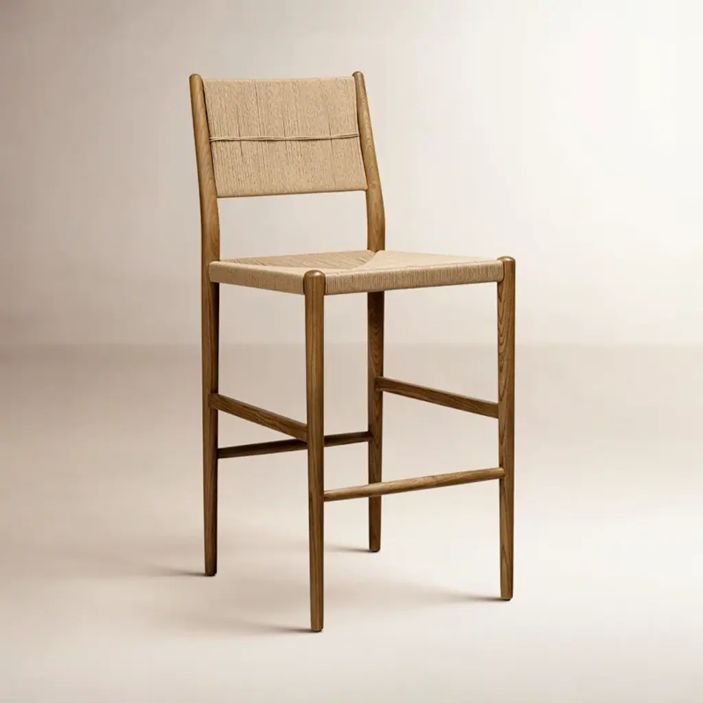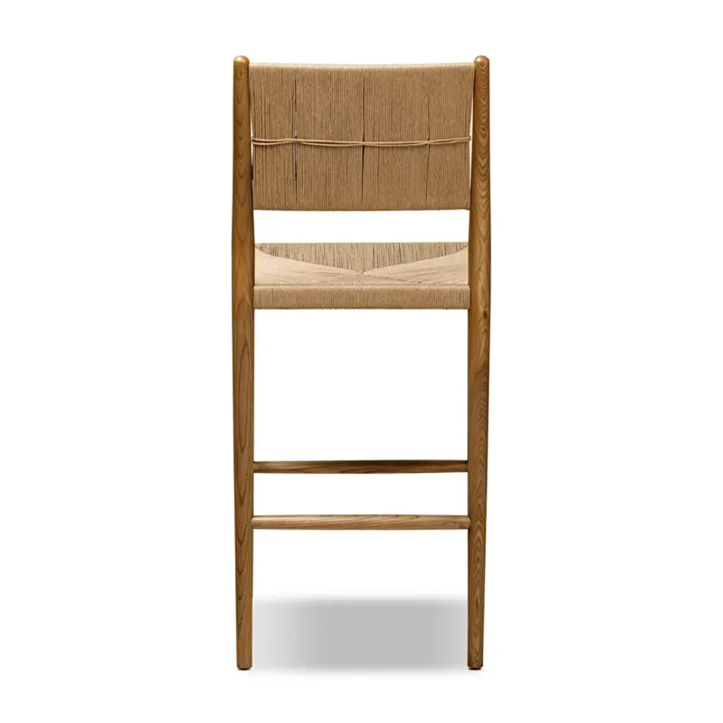 An updated weave pattern with double-twist detailing gives the classic bar stool a textural upgrade. Made from toasted ash and natural paper cord. A design collaboration by Amber Lewis and Four Hands.