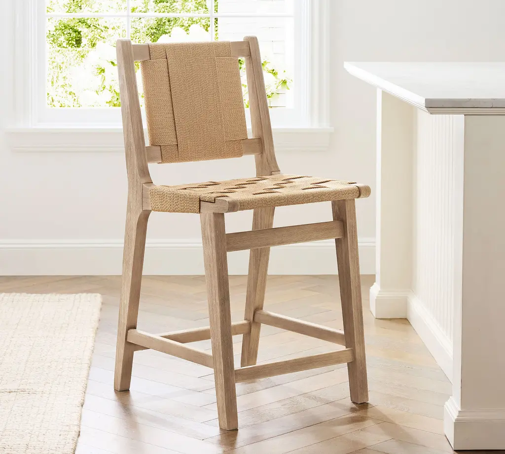 An updated weave pattern with double-twist detailing gives the classic bar stool a textural upgrade. Made from toasted ash and natural paper cord.