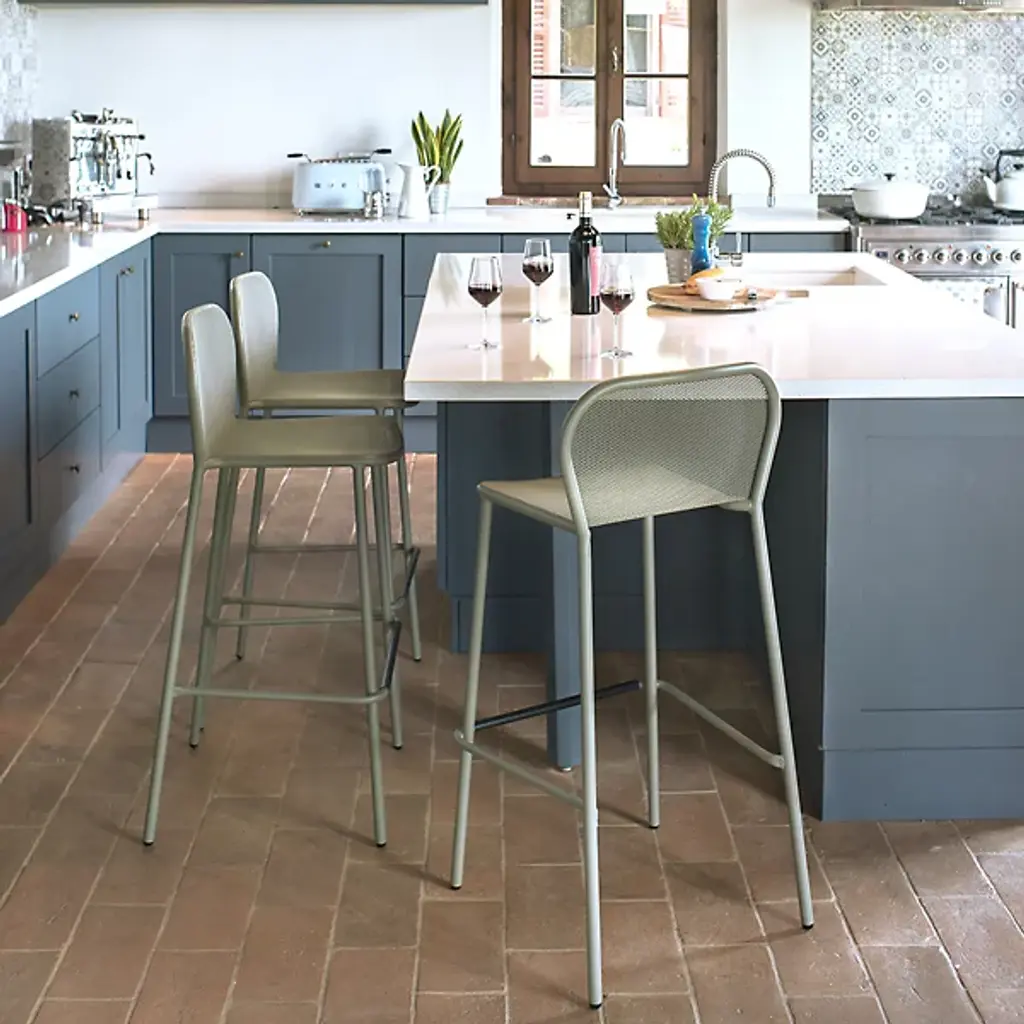The Darwin Outdoor Stacking Barstool from Emu Set of 4 sits one high up with a slim yet rugged design that’s an evolution of classic chair styling. Creators Lucide e Pevere create works characterized by their handcrafted quality and compositional rigor. This handcrafted quality shows in the barstool’s tubular steel framework. A powder-coating application enhances the steel’s durability. The stackable steel framework creates an airy silhouette that curves at the top to provide a relaxing back and seat rest. Metal mesh fills in the resting elements for a throwback textured look that helps create comfortable airflow.