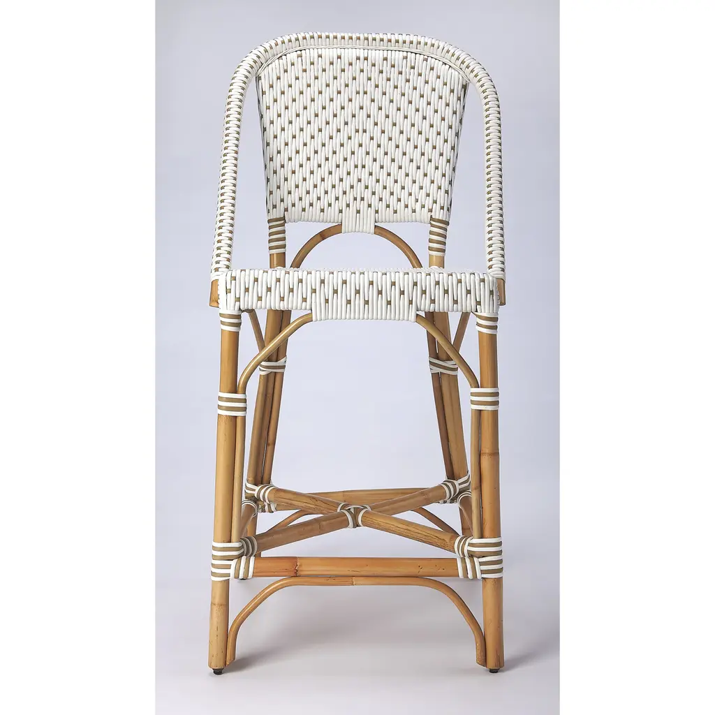 Butler Specialty Company Solstice Rattan 25" Counter Stool, White and Tan Dot