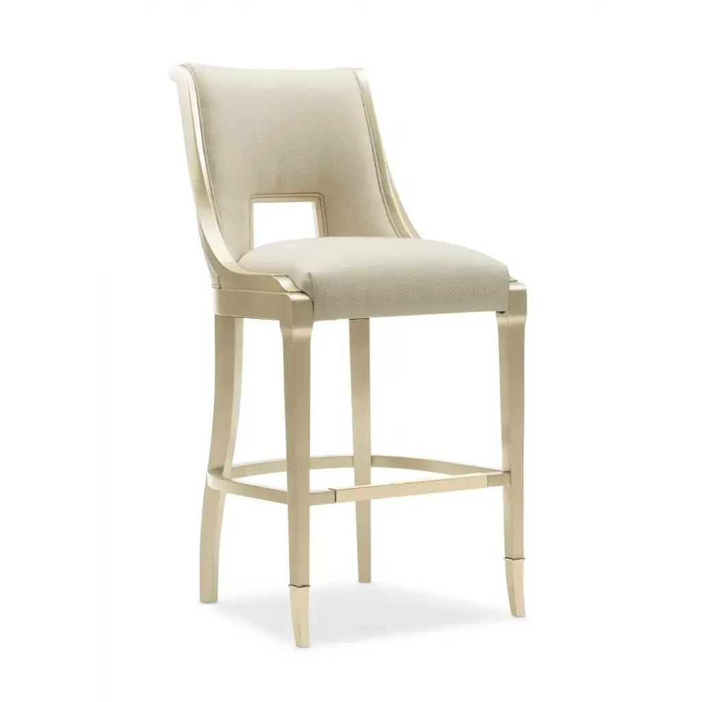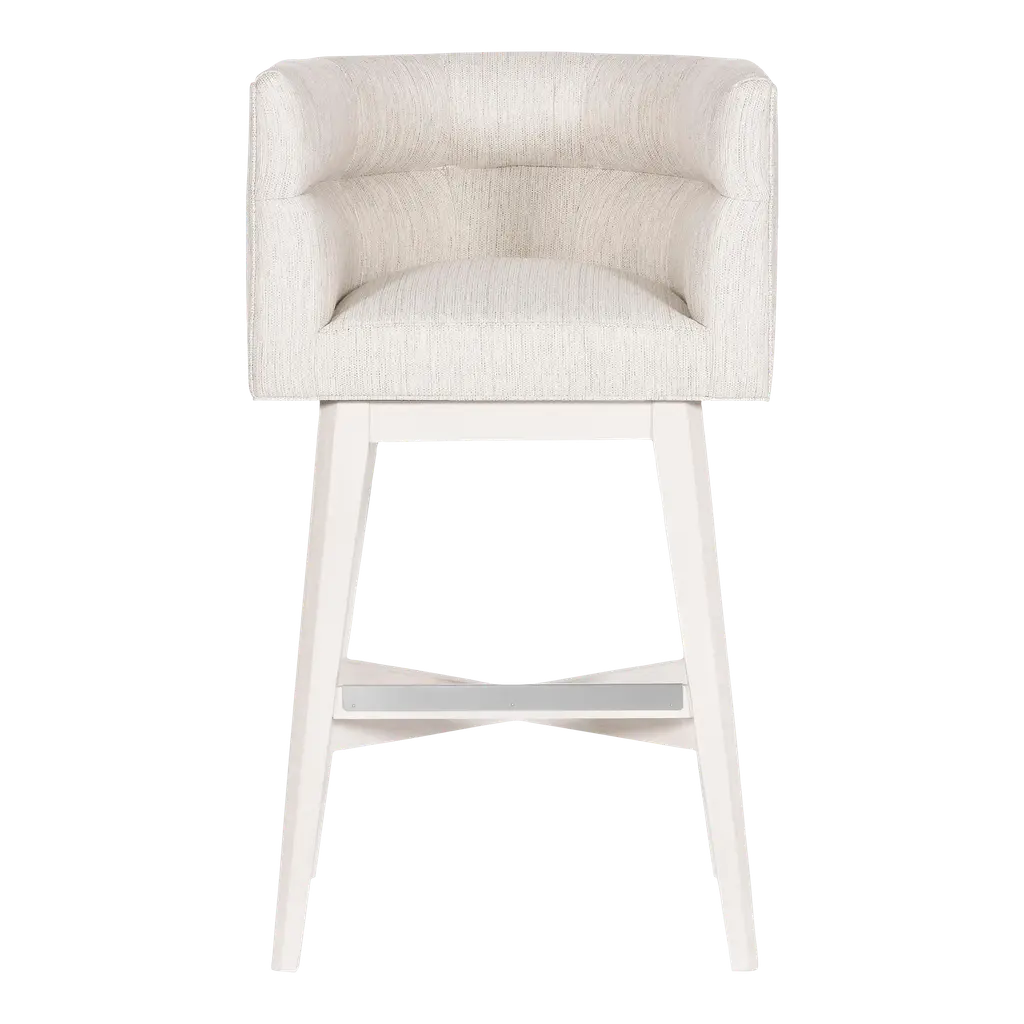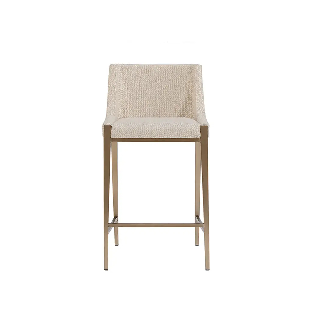 With its clean and modern design, this barstool is a stunning addition to any dining space. Stocked in our textured monument oatmeal fabric and completed with powder-coated stainless steel legs in an antique brass finish.