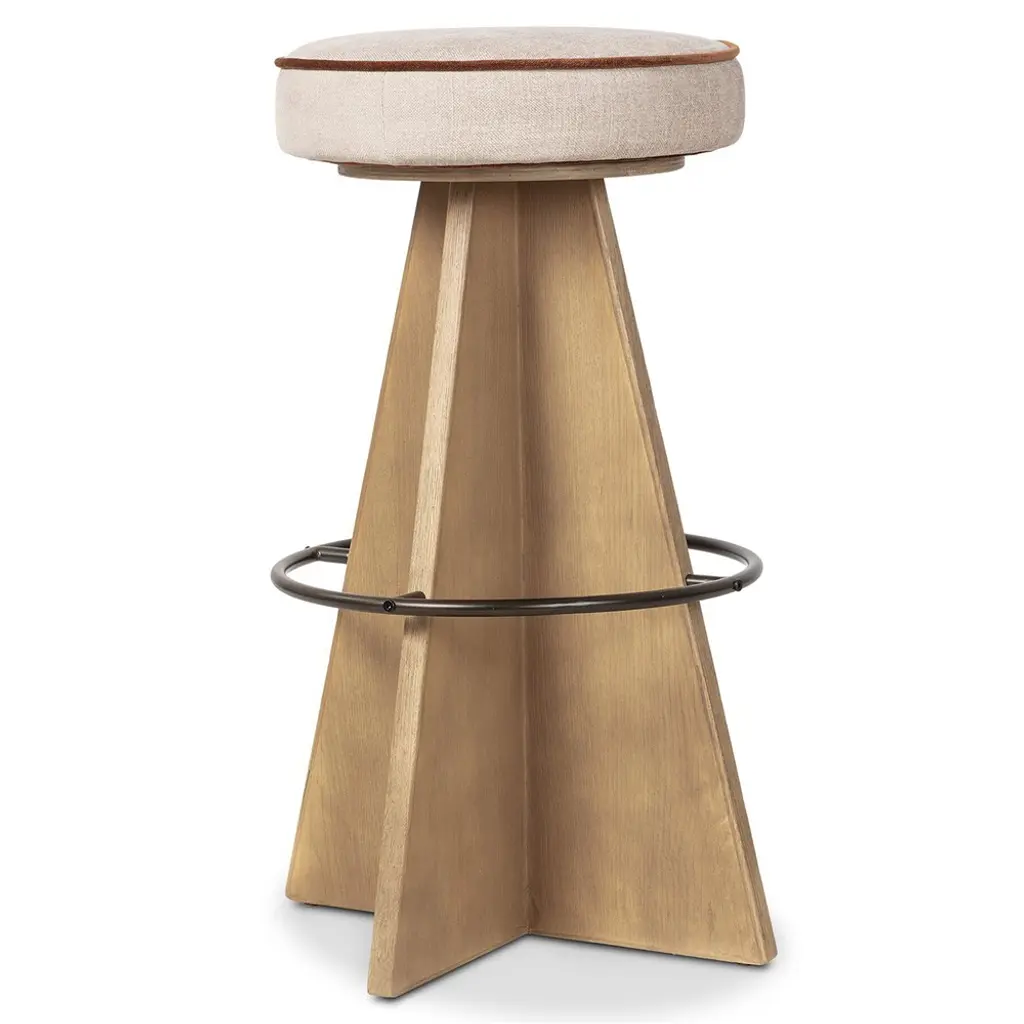 Donovan Modern Classic Beige Performance Natural Oak Swivel Bar Stool