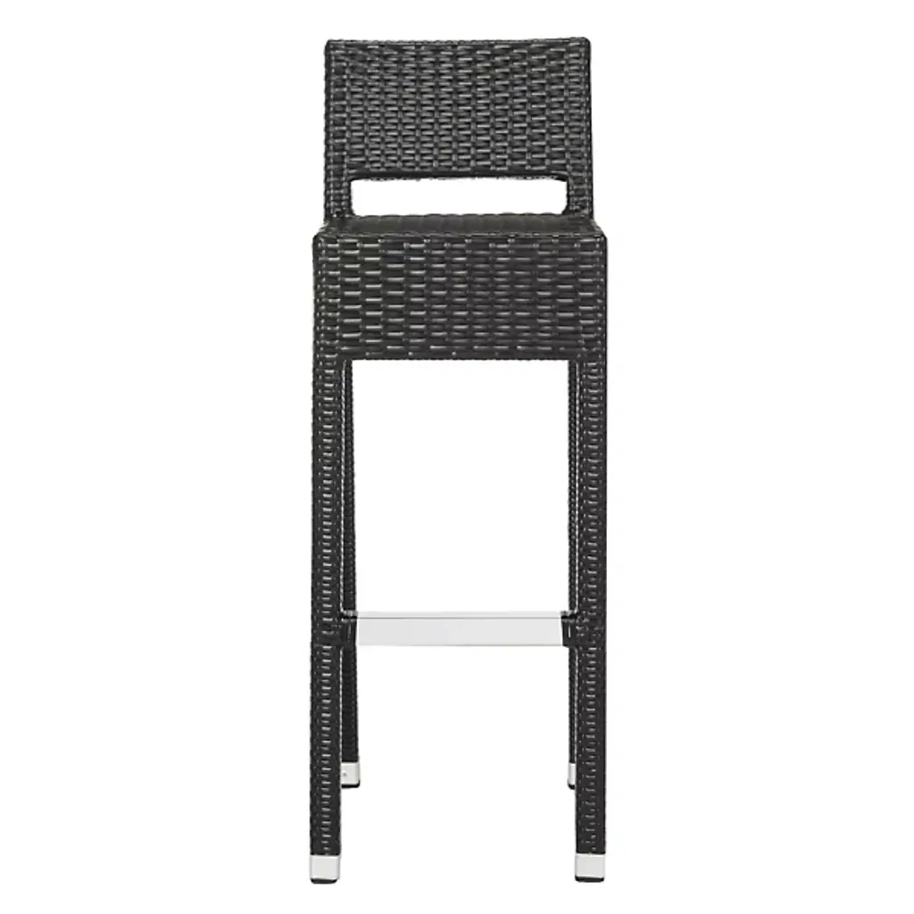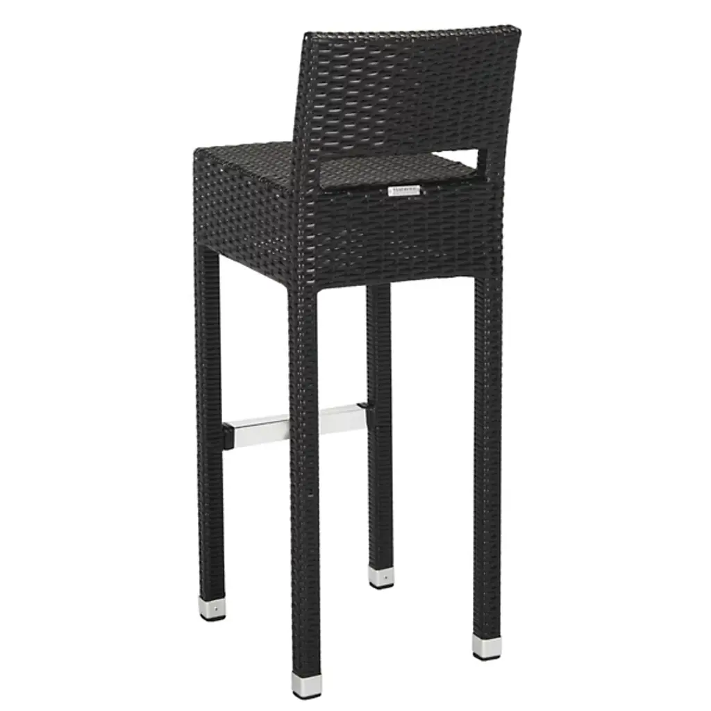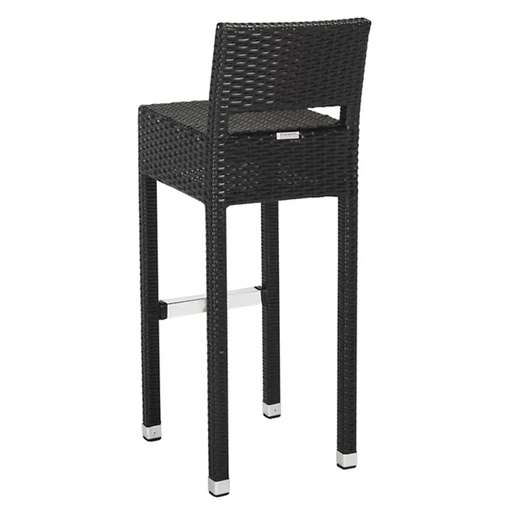 The Dorland Indoor/Outdoor Bar Stool from Alder & Ore adds a stylish coastal vibe to any setting. A tall, blocky design with a low back, it’s perfect for enjoying drinks or casual dining and features a durable polyethylene wicker rattan seat complemented by a sturdy aluminum frame. Bright metal collar accents around each leg and the footbar provide a touch of sophistication, blending function with flair. Tough enough for outdoor use, it’s a chic addition to coastal and contemporary decor.