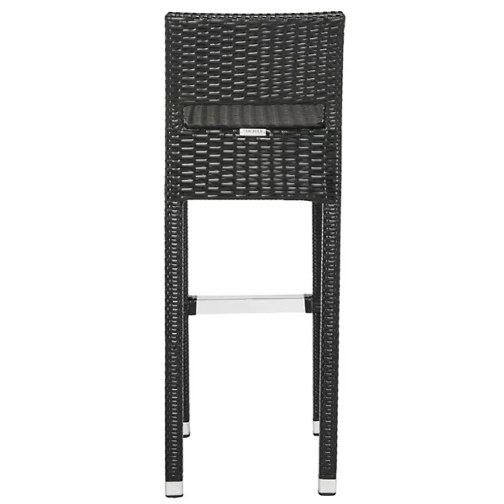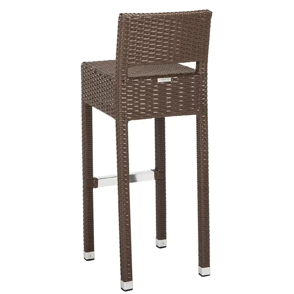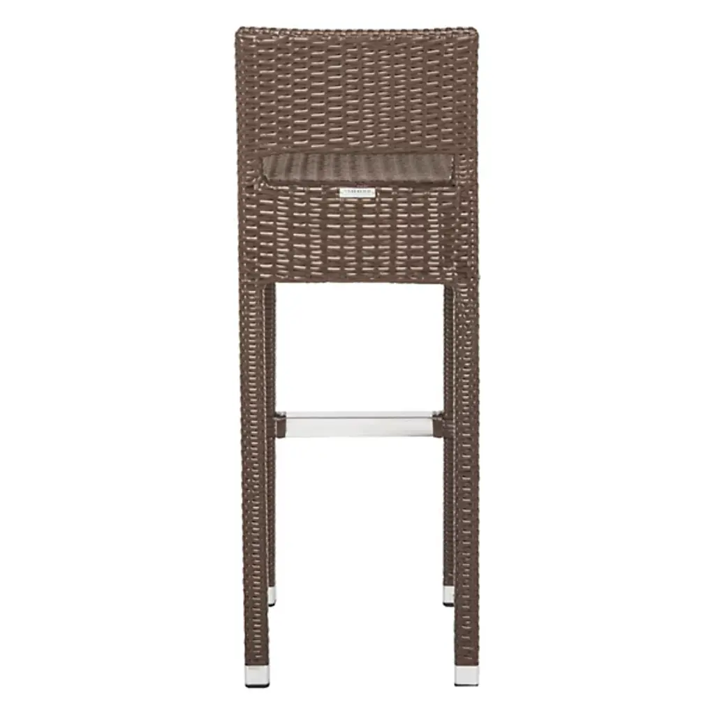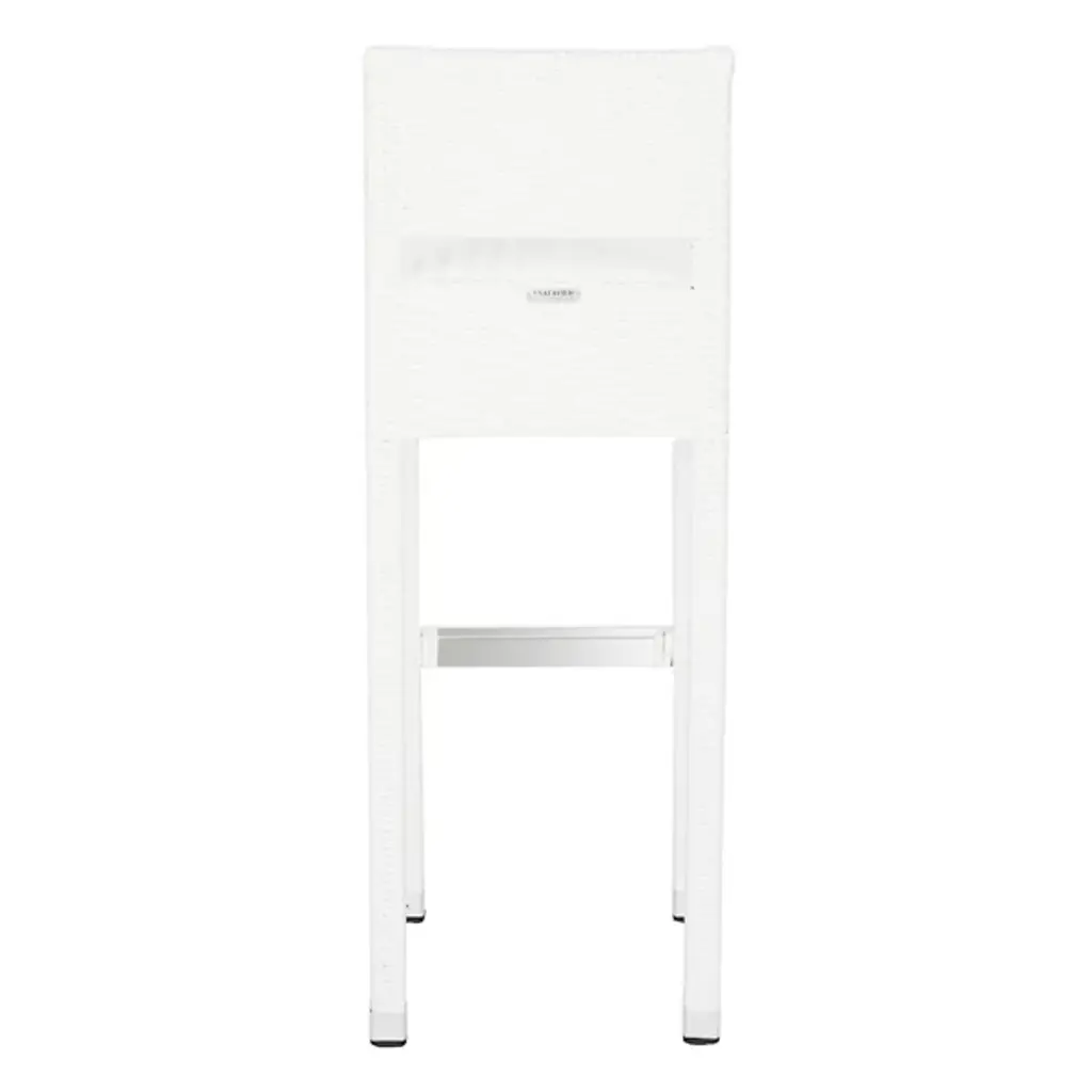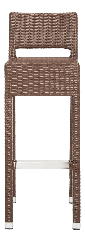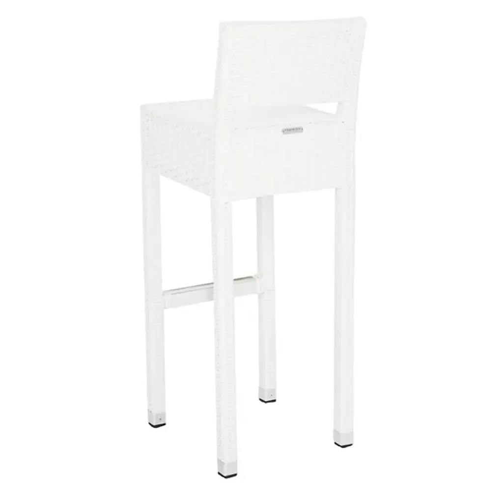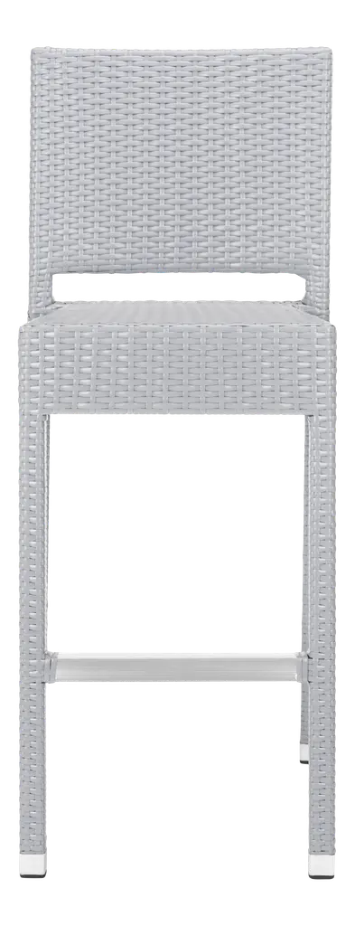 The Dorland Indoor/Outdoor Bar Stool from Alder & Ore adds a stylish coastal vibe to any setting. A tall, blocky design with a low back, it’s perfect for enjoying drinks or casual dining and features a durable polyethylene wicker rattan seat complemented by a sturdy aluminum frame. Bright metal collar accents around each leg and the footbar provide a touch of sophistication, blending function with flair. Tough enough for outdoor use, it’s a chic addition to coastal and contemporary decor.