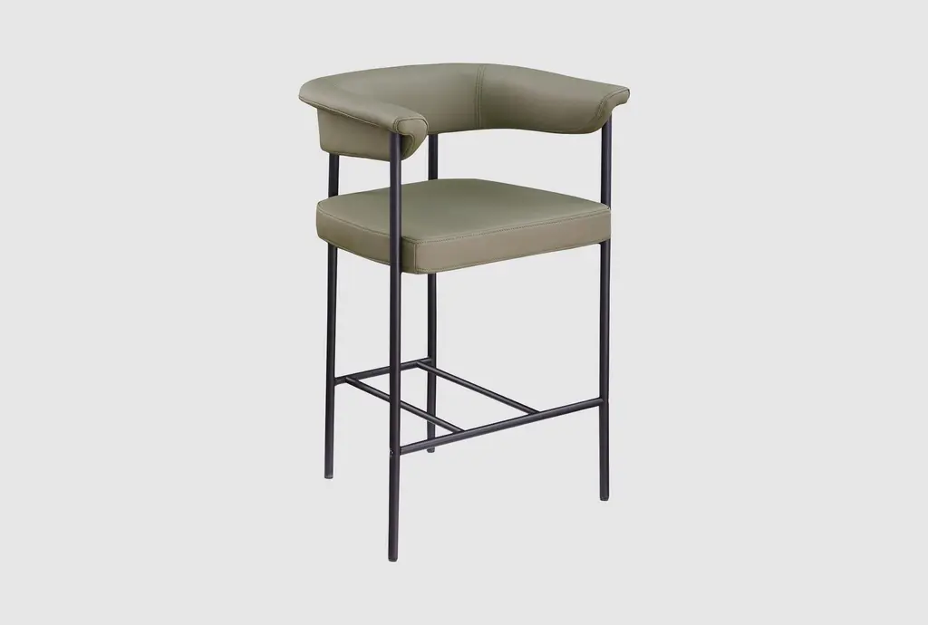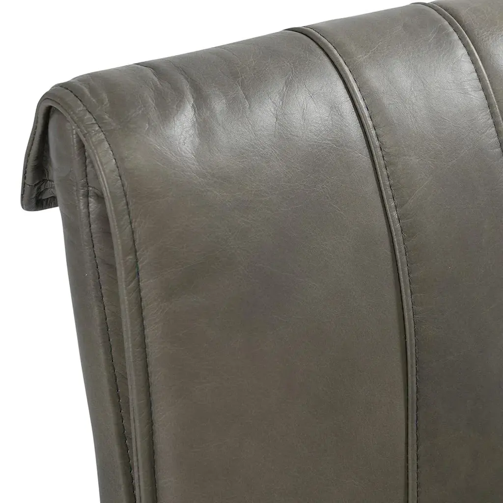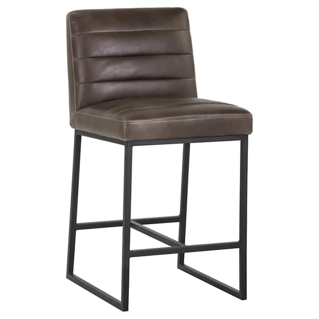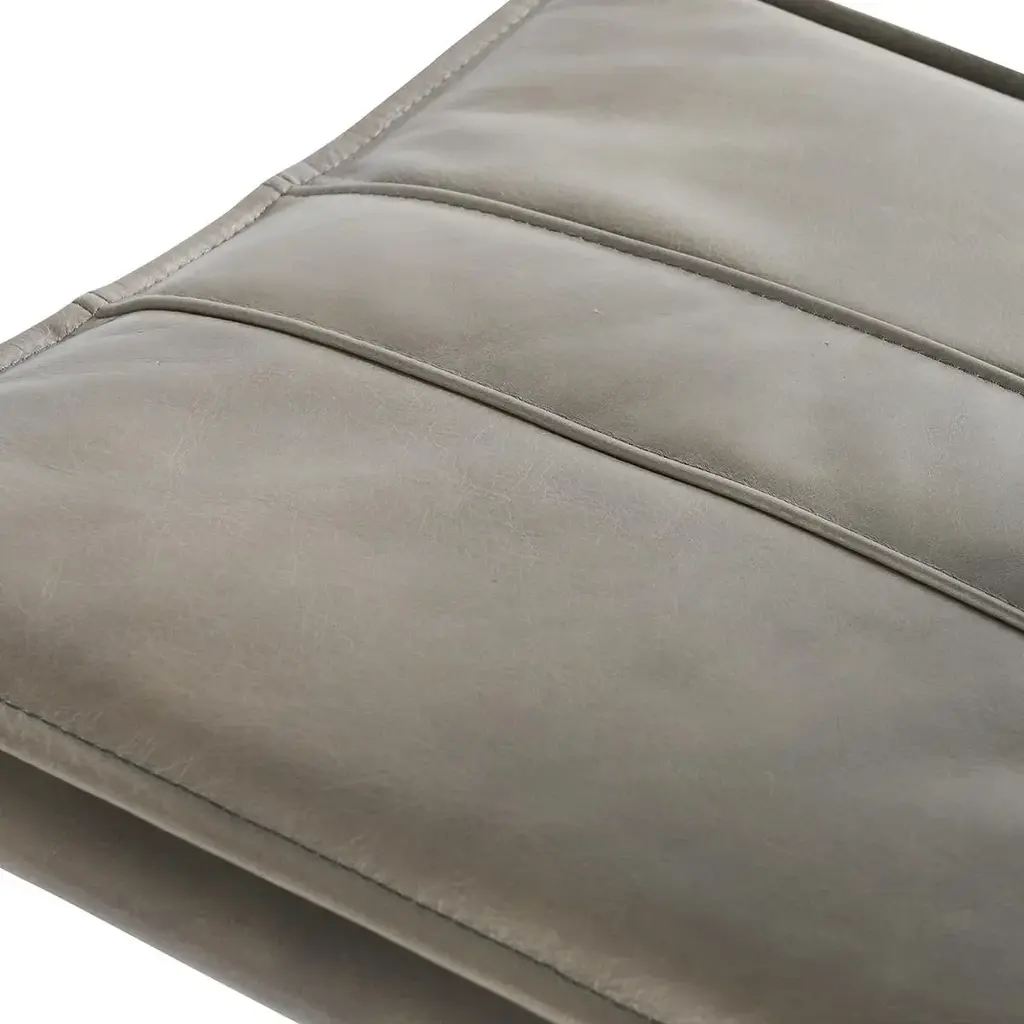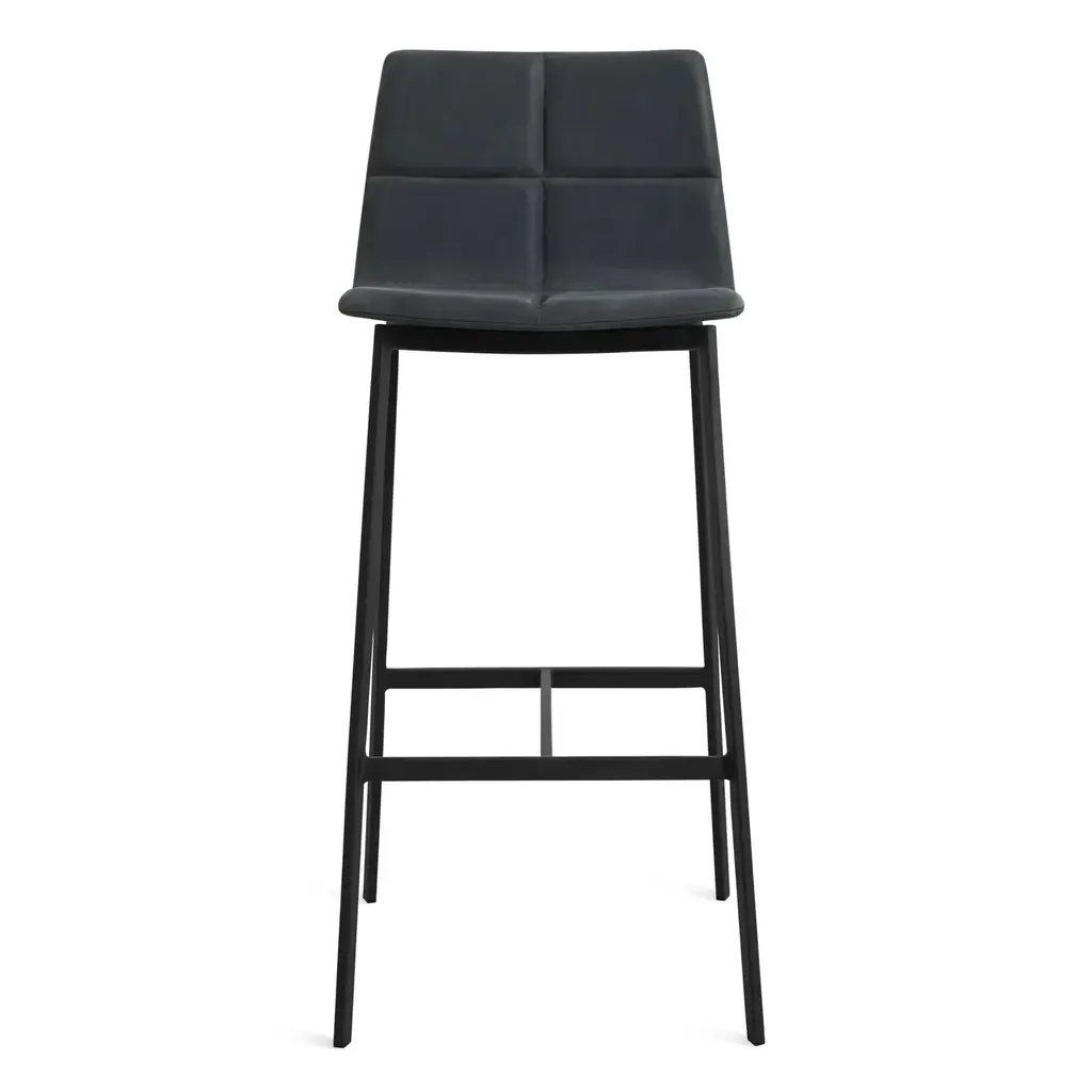 Beautiful top grain grey leather bar stool. Solid and sturdy black iron frame and legs with double seat cushion and roll back design with comfort and style. Seat height is 30". This stool weighs approx. 30 lbs.