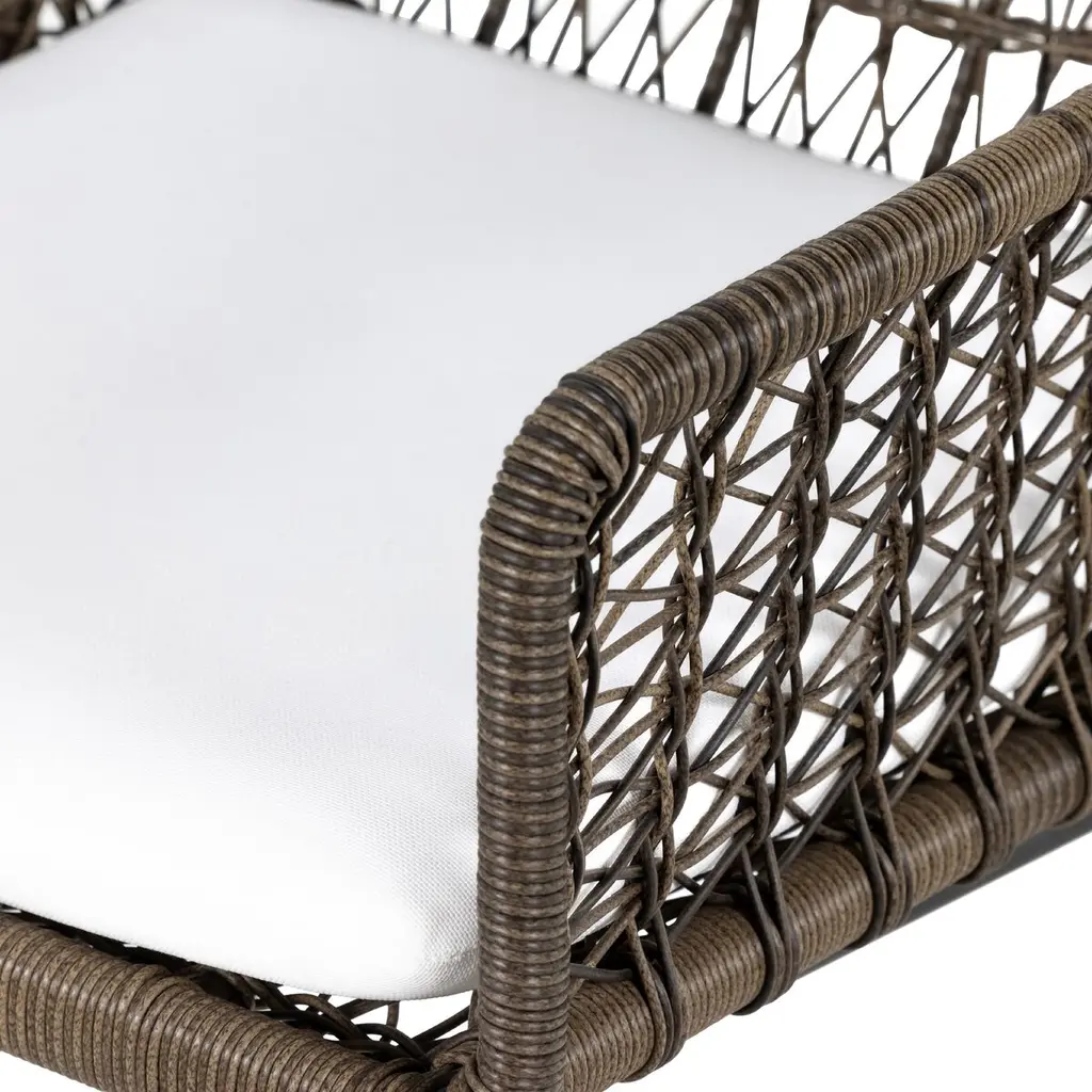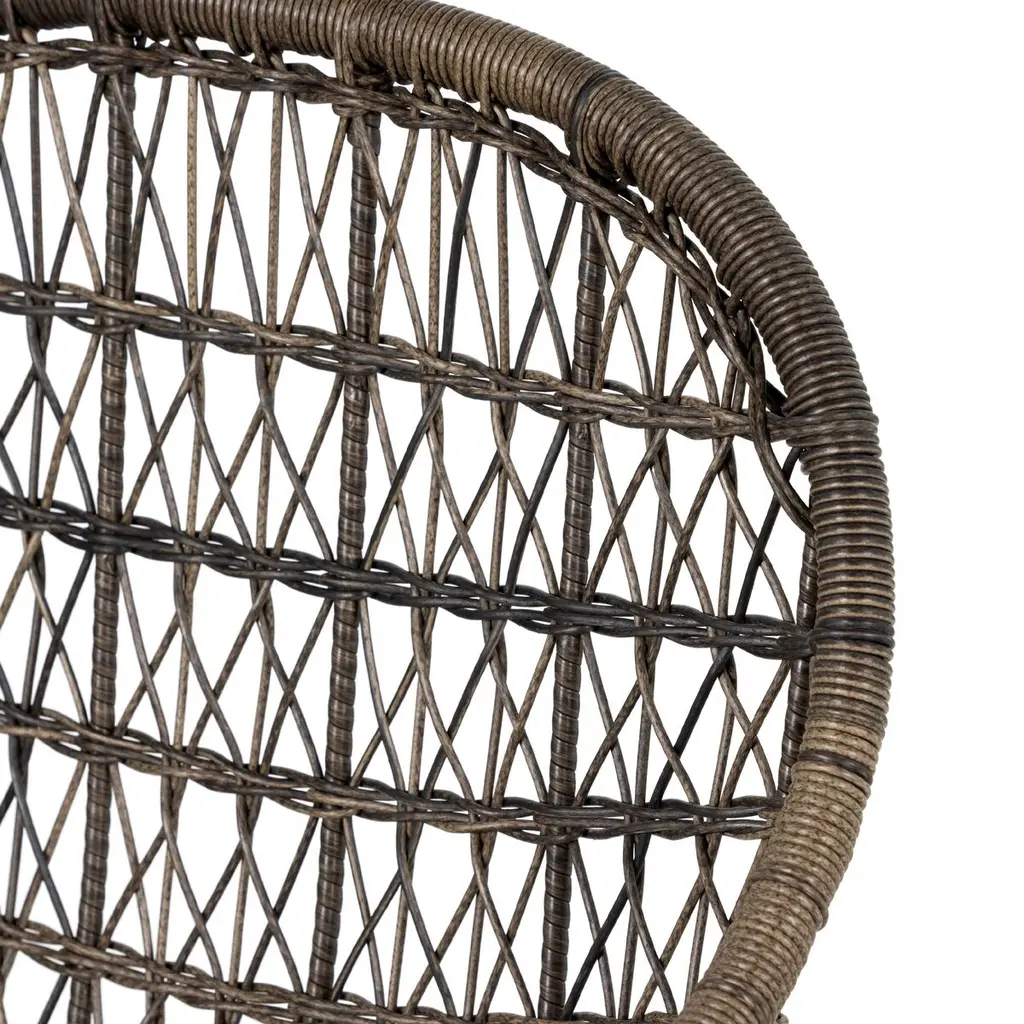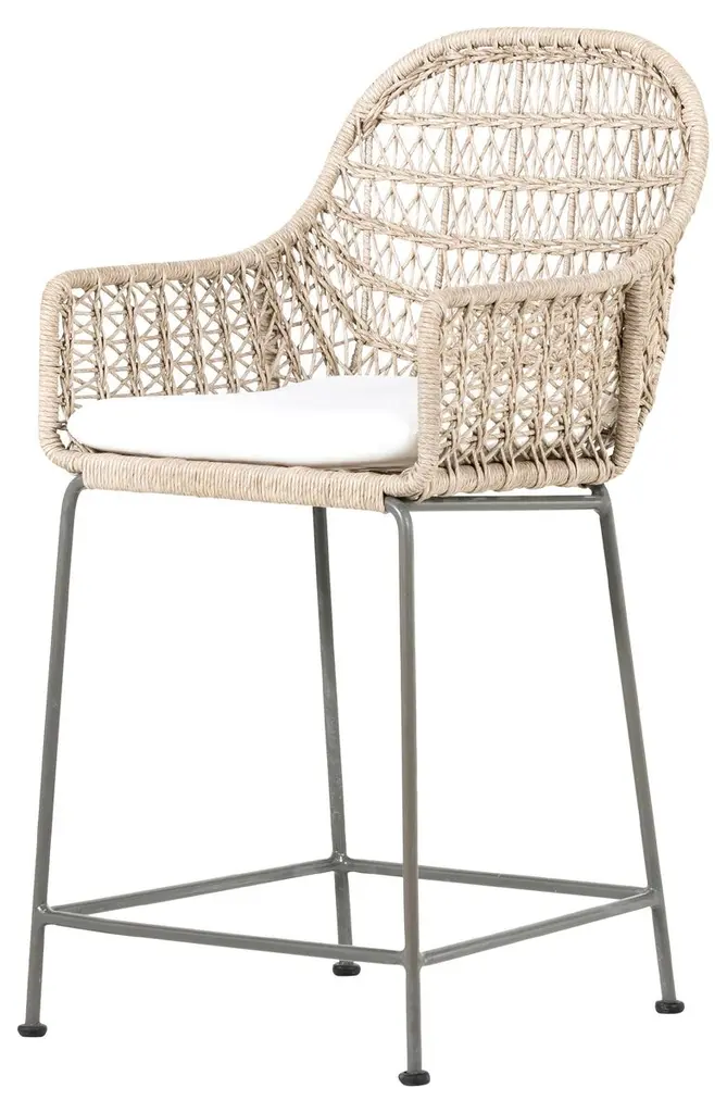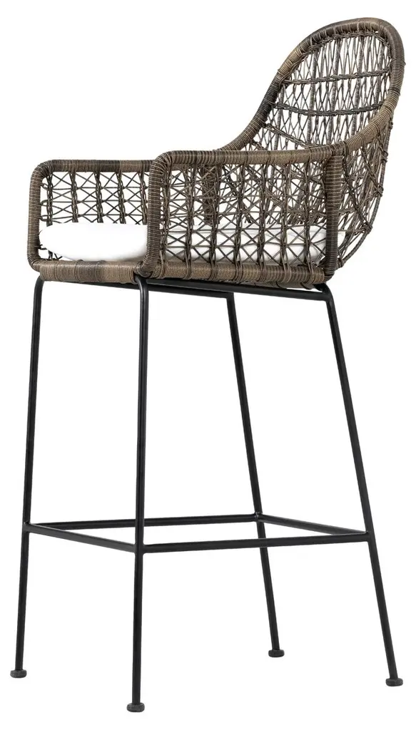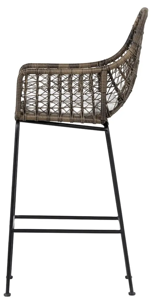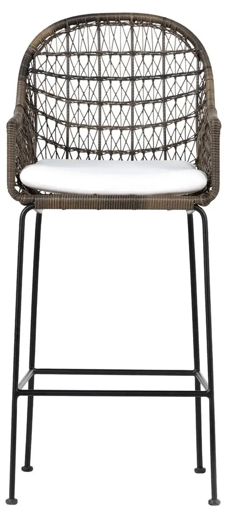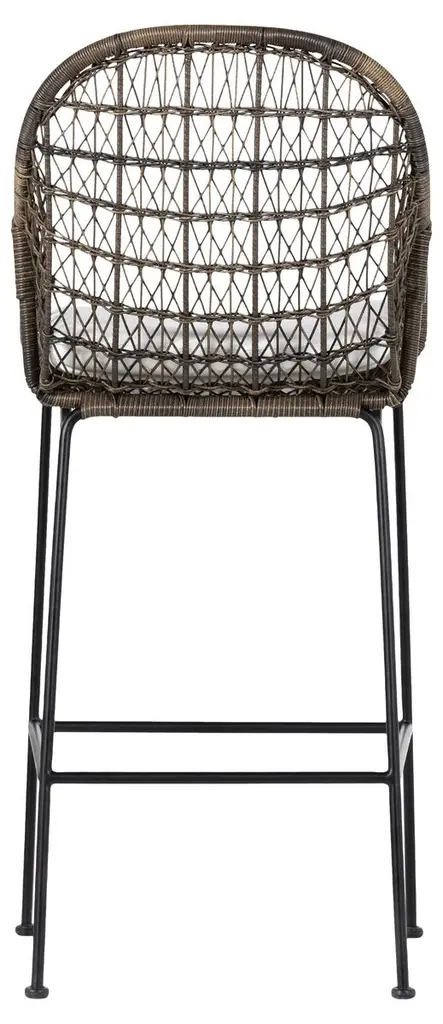 The airy weave of this barstool's all-weather wicker seat and back provides a boho complement to its minimalist iron base. Durable enough for outdoors, this stool is also chic enough for indoors.