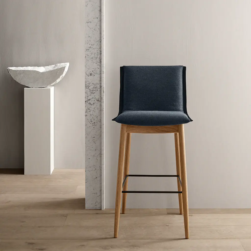 Contemporary aesthetics and a tradition for quality craftsmanship meet on the versatile and comfortable Embrace Bar Stool, designed for Carl Hansen & Son by EOOS.