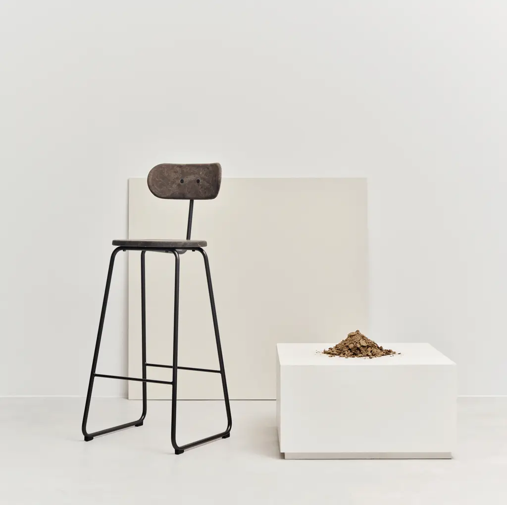 Earth Stool represents classic Scandinavian design with an ingenious eco-technology update. Designed by Danish architect Eva Harlou, the metal bar stool has a press-molded seat and backrest made from compounds that include plastic production waste and other fiber-based materials. The Coffee Edition employs spent shells from the beans as well as discarded insulin pens while the Mask Edition uses the spent grain —or “mask” in Danish—from beer production mixed with recycled industrial plastic.