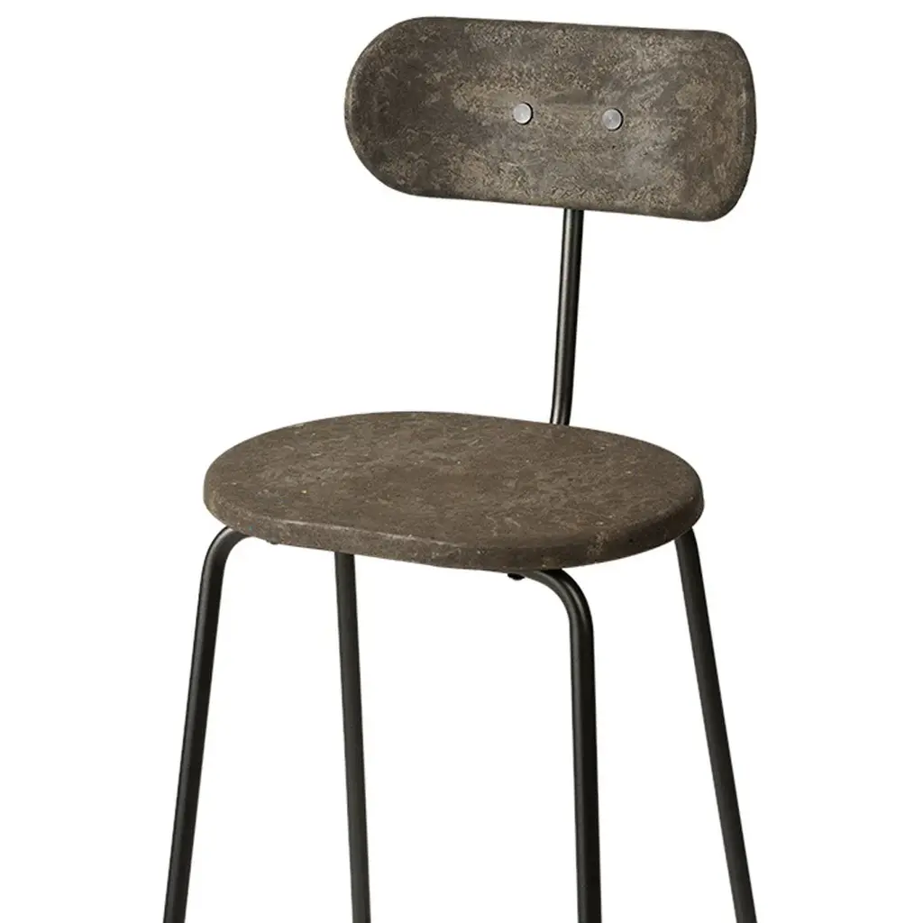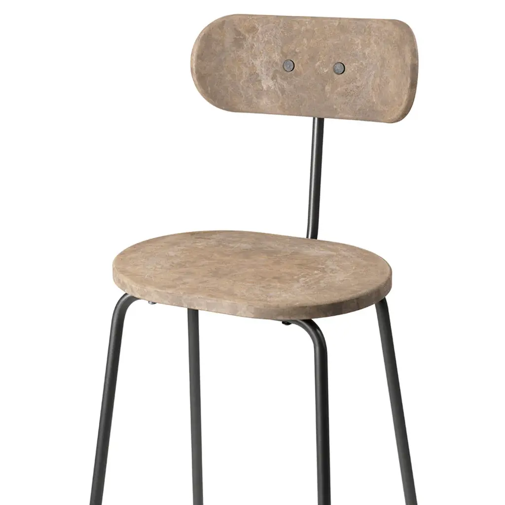 Earth Stool is a circular bar stool designed by Danish architect Eva Harlou. Earth Stool is the result of a new innovative waste-to-value technique that enables Mater to reuse companies' industrial waste, e.g. plastic waste and other fibre-based materials. The seats are made from insulin pens in collaboration with Novo Nordisk and coffee bean shells from BKI coffee or waste from Carlsberg's beer production – the spent grain – mixed with post-industrial plastic waste. The technique is developed in collaboration with Danish Technological Institute with support from the University of Copenhagen. The waste materials are mixed in a unique compound suitable for press moulding – a method designed to reuse companies' resources more efficiently. Earth Stool represents classic Scandinavian design with steel frames that make the bar stool elegant and timeless. The Earth Stool supports the UN Sustainable Development Goals: 'Life on Land' (SDG 15), 'Responsible consumption and production' (SDG 12) and 'Partnerships for the goals' (SDG 17).