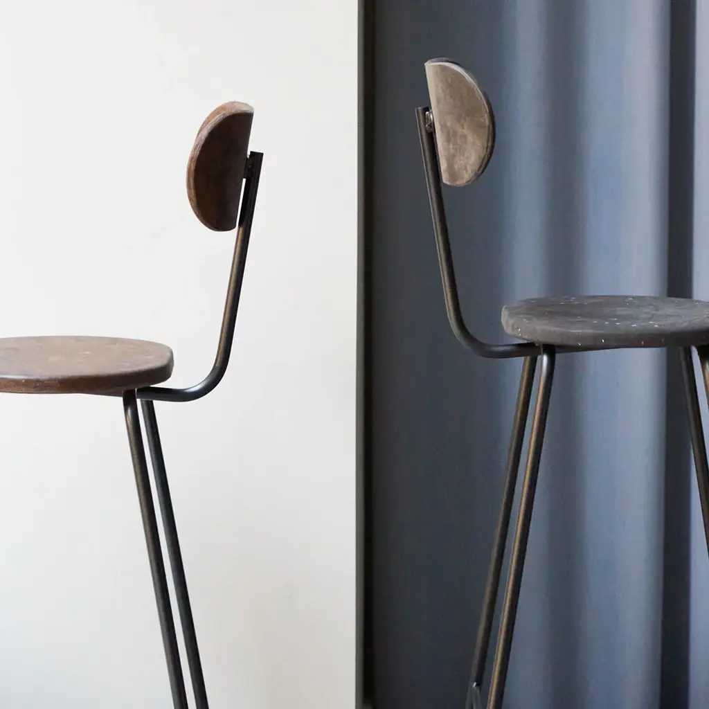 Earth Stool is a circular bar stool designed by Danish architect Eva Harlou. Earth Stool is the result of a new innovative waste-to-value technique that enables Mater to reuse companies' industrial waste, e.g. plastic waste and other fibre-based materials. The seats are made from insulin pens in collaboration with Novo Nordisk and coffee bean shells from BKI coffee or waste from Carlsberg's beer production – the spent grain – mixed with post-industrial plastic waste. The technique is developed in collaboration with Danish Technological Institute with support from the University of Copenhagen. The waste materials are mixed in a unique compound suitable for press moulding – a method designed to reuse companies' resources more efficiently. Earth Stool represents classic Scandinavian design with steel frames that make the bar stool elegant and timeless. The Earth Stool supports the UN Sustainable Development Goals: 'Life on Land' (SDG 15), 'Responsible consumption and production' (SDG 12) and 'Partnerships for the goals' (SDG 17).