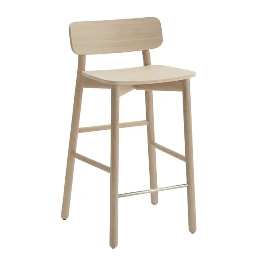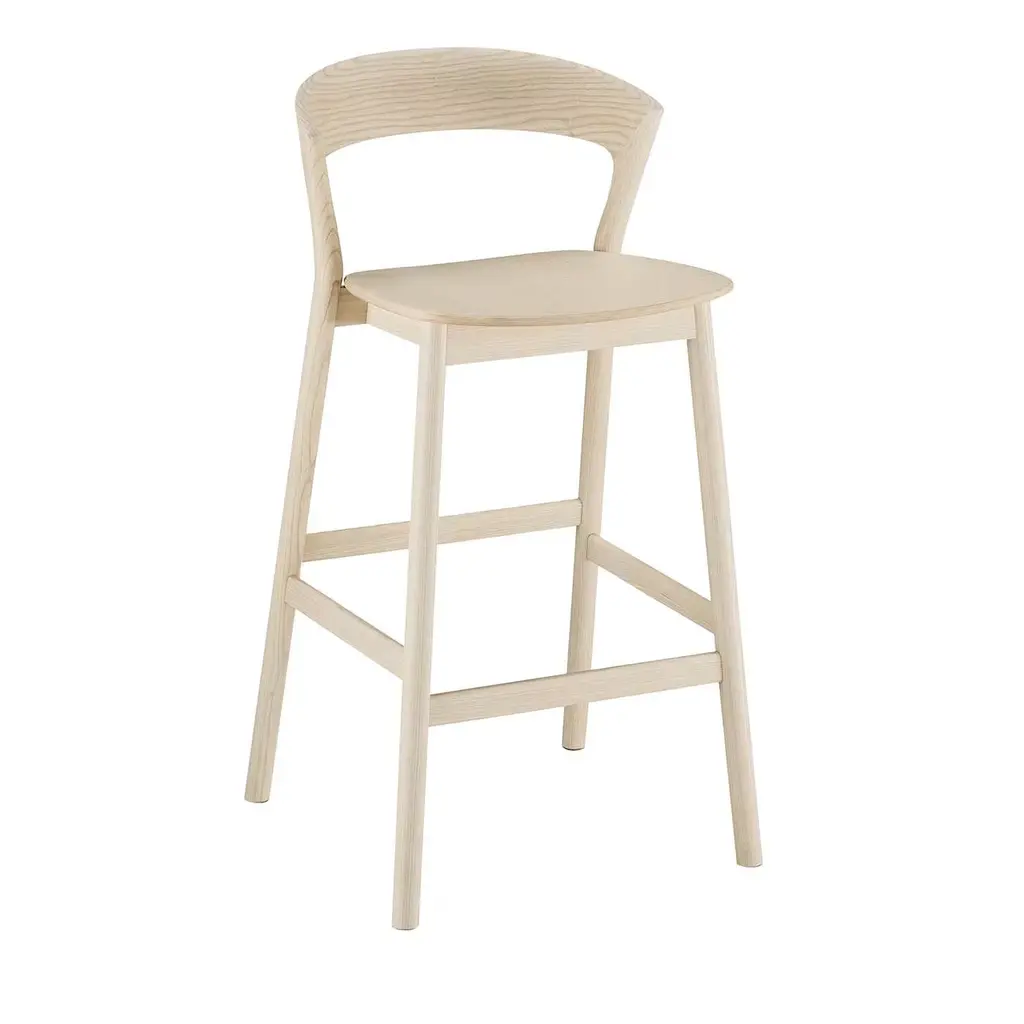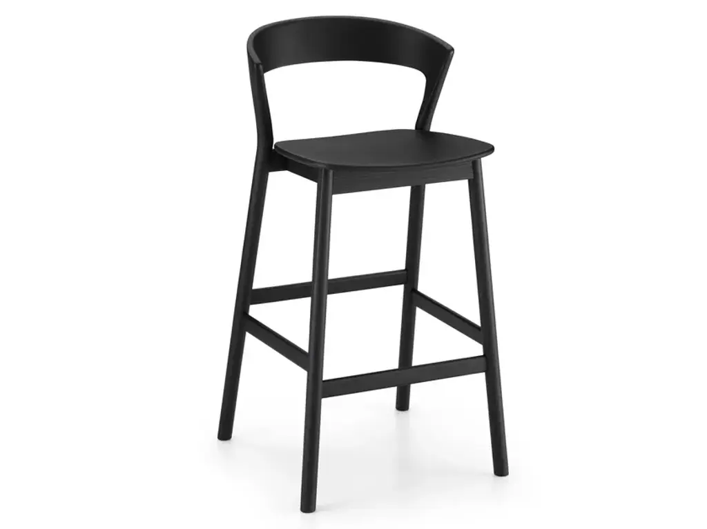 High bar stool with multilayer seat (beech/ash) from the EDITH collectio, designed by Massimo Broglio.
