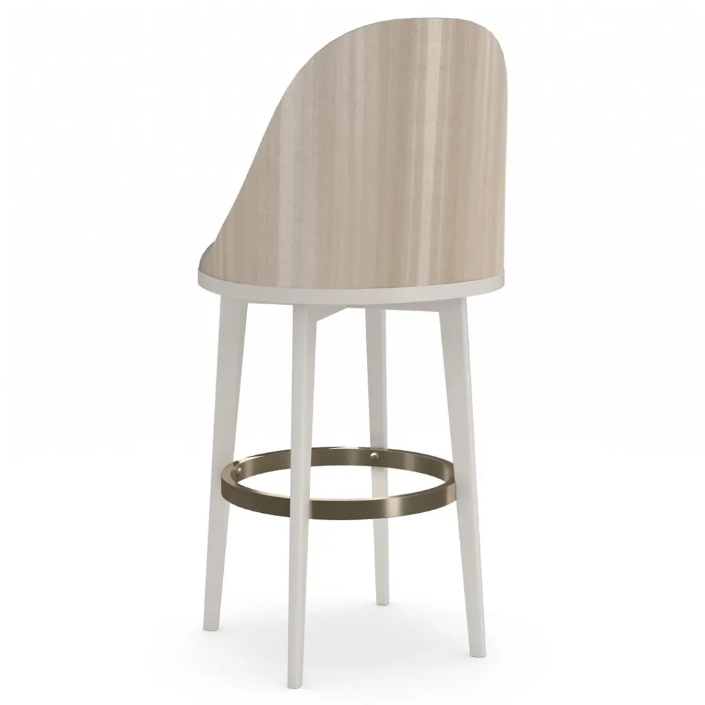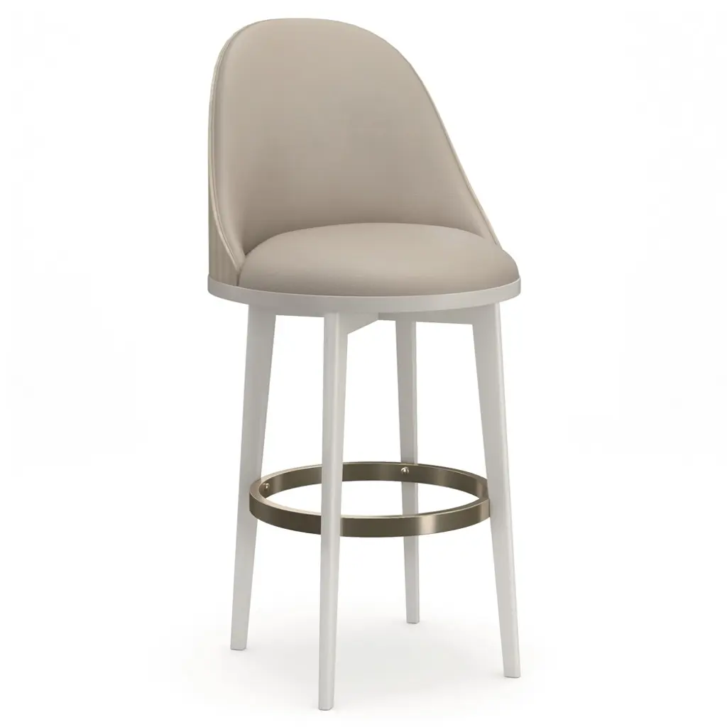 Edram Modern Classic Beige Upholstered White Wood Bar Stool