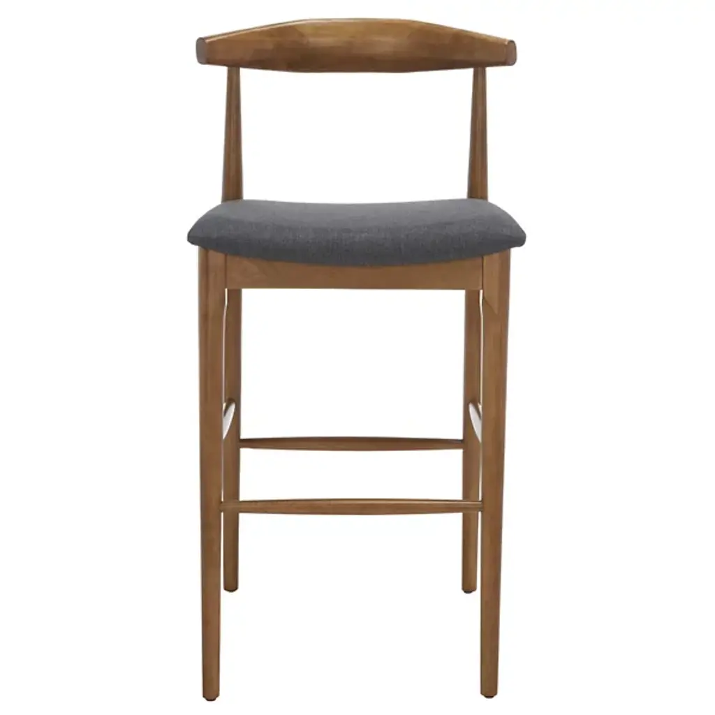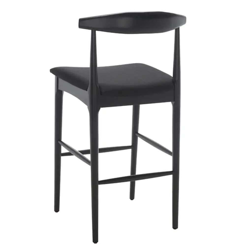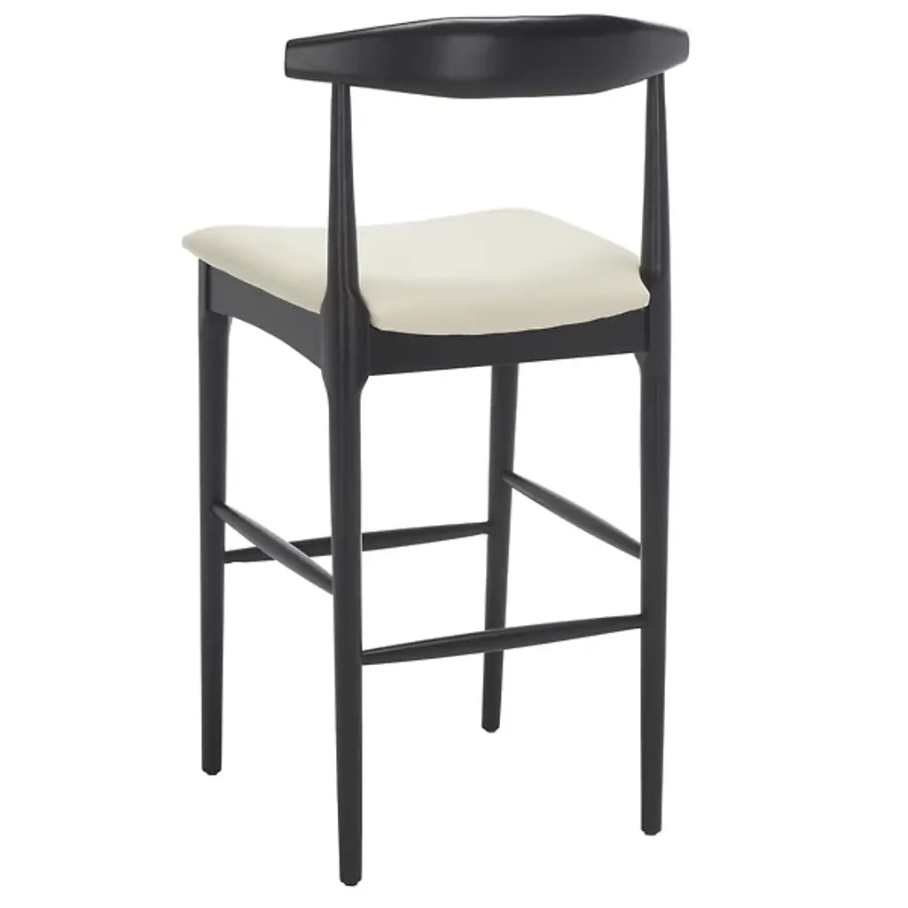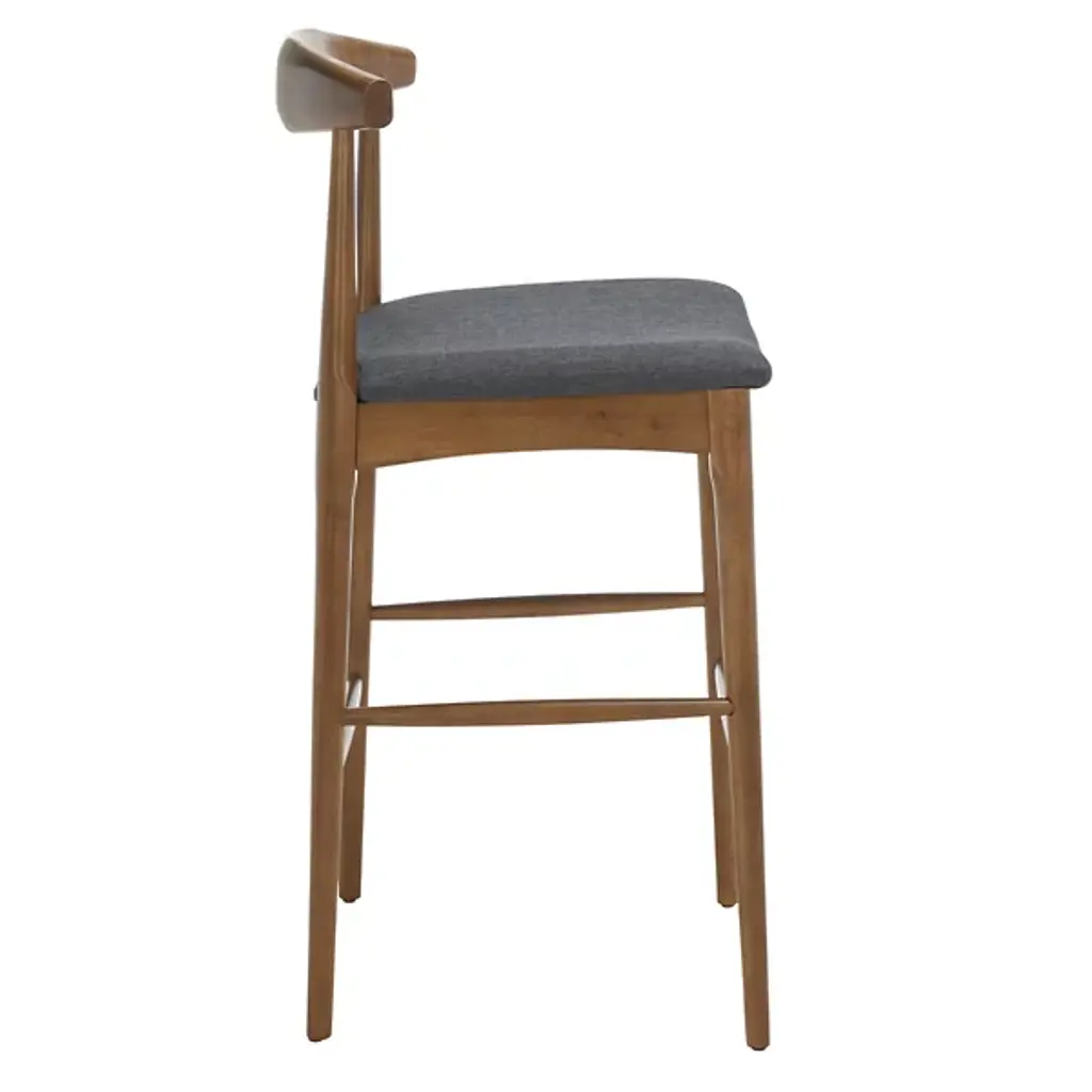Discover the Eduarda Retro Bar Stool from Alder & Ore, a perfect blend of sleek style and comfort for your home. Light and strong, this bar stool boasts a smoothly arcing bentwood back that combines exceptional support with a minimalistic design. Crafted with a chic smooth finish, its solid wood frame and tapered legs create a stunning contrast against the generously padded cream seat. Whether at a bar, high dining table, or kitchen island, this stool provides a comfortable and luxurious seating experience. Crafted with a mix of rubber wood and plywood, its polyester fabric and foam fill inserts Contemporary and Mid-Century Modern style into your decor.