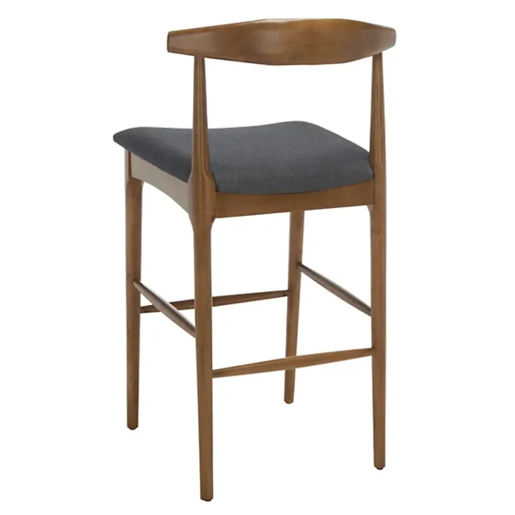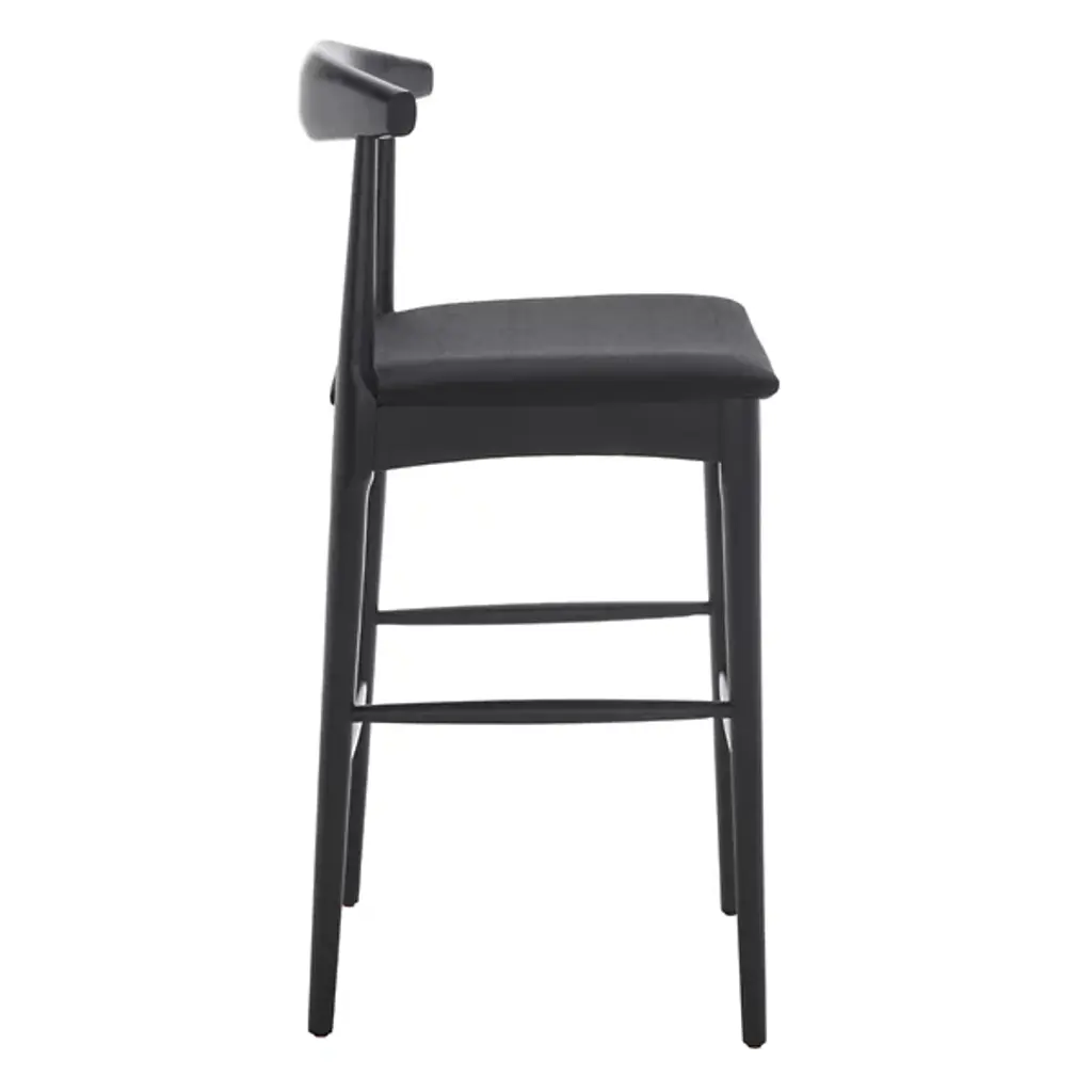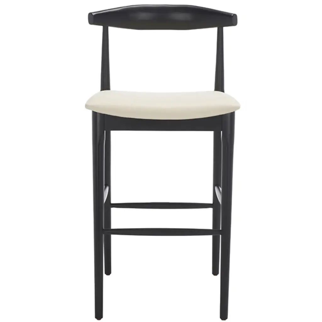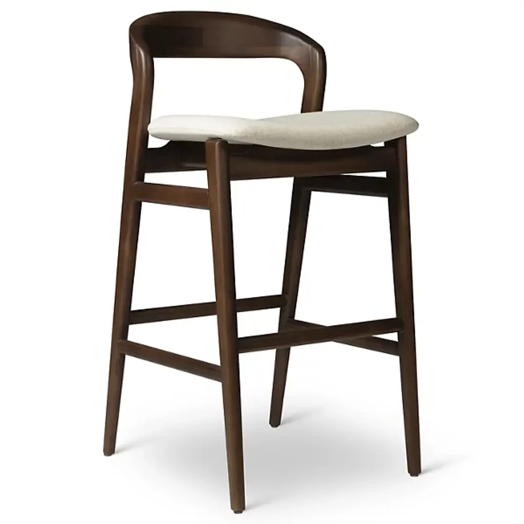 Discover the Eduarda Retro Bar Stool from Alder & Ore, a perfect blend of sleek style and comfort for your home. Light and strong, this bar stool boasts a smoothly arcing bentwood back that combines exceptional support with a minimalistic design. Crafted with a chic smooth finish, its solid wood frame and tapered legs create a stunning contrast against the generously padded cream seat. Whether at a bar, high dining table, or kitchen island, this stool provides a comfortable and luxurious seating experience. Crafted with a mix of rubber wood and plywood, its polyester fabric and foam fill inserts Contemporary and Mid-Century Modern style into your decor.