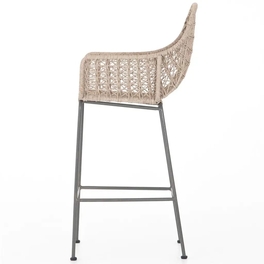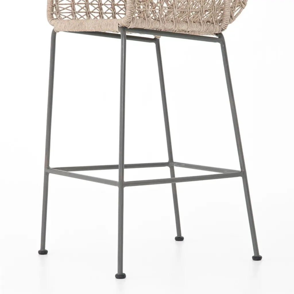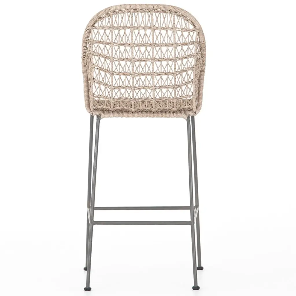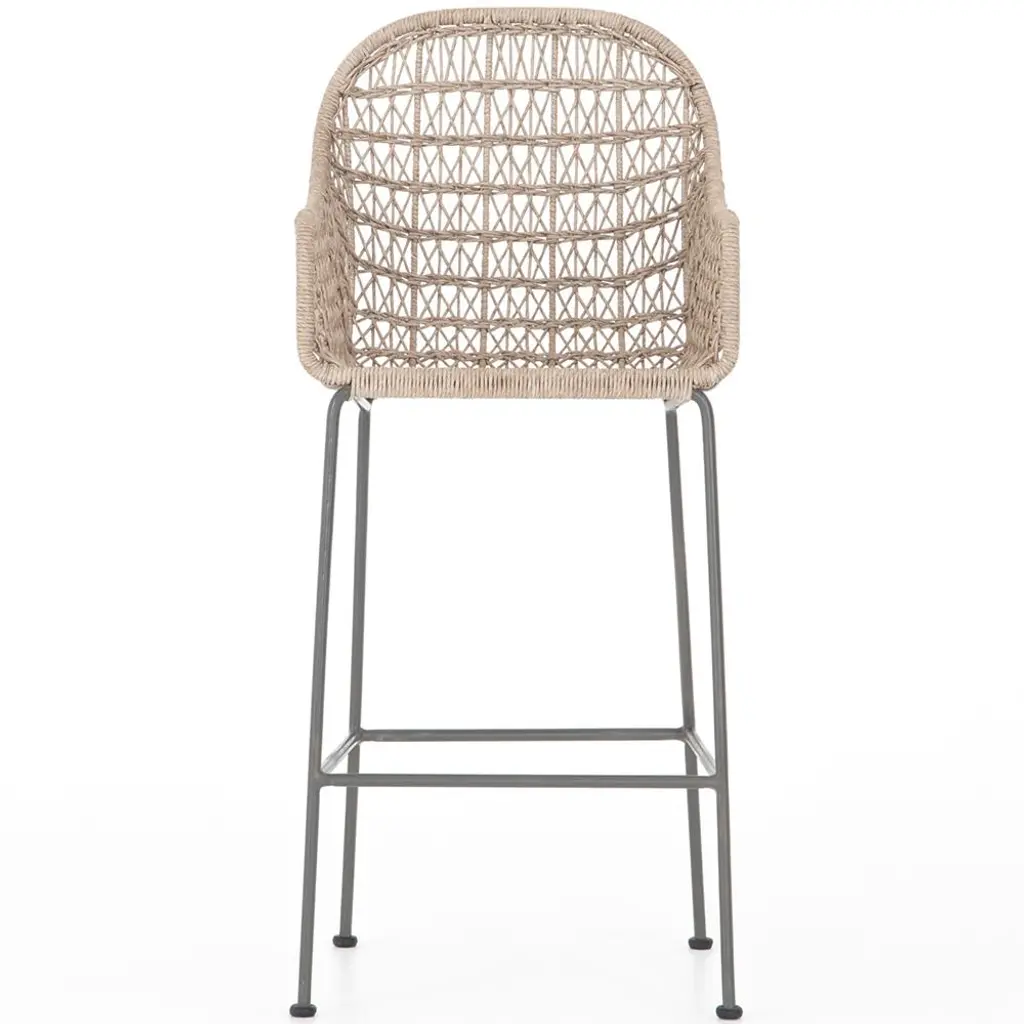 Elena Coastal Beach Beige Wicker Iron Frame Outdoor Bar Stool