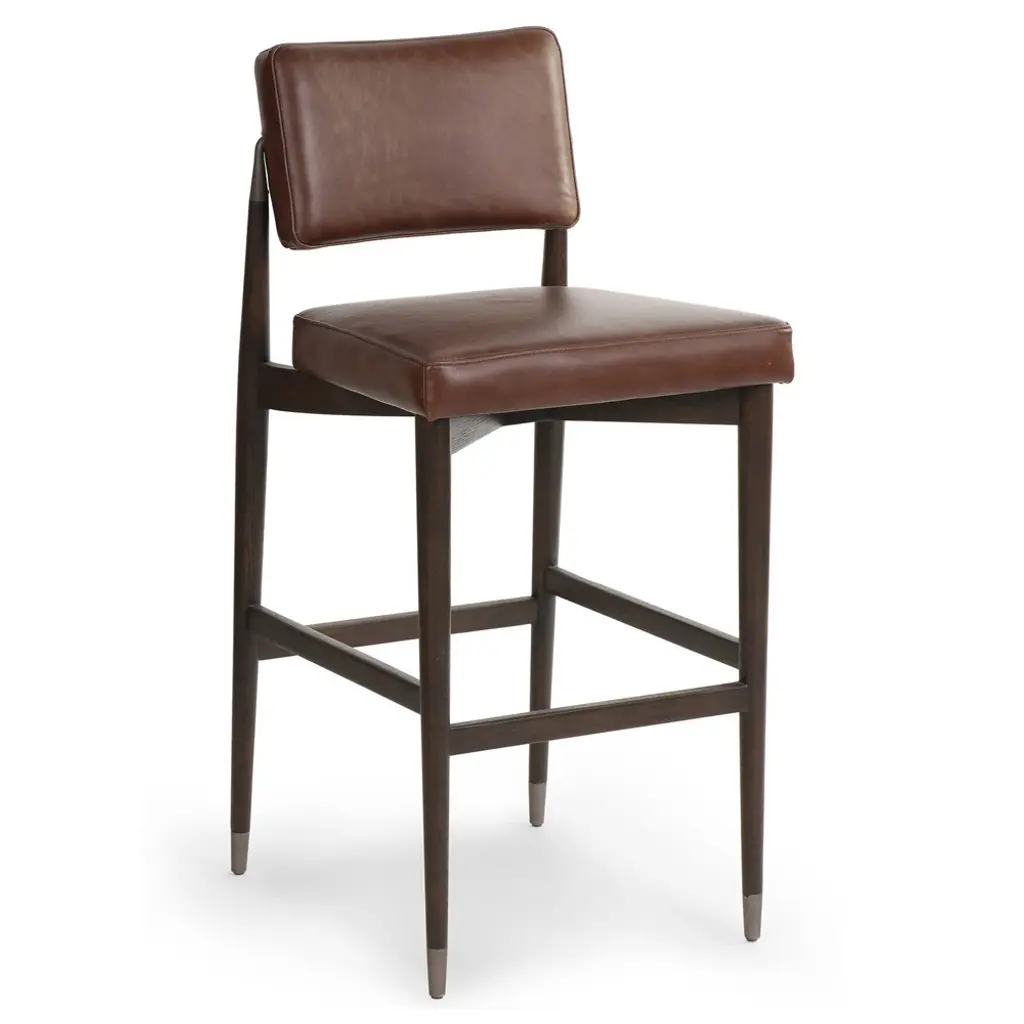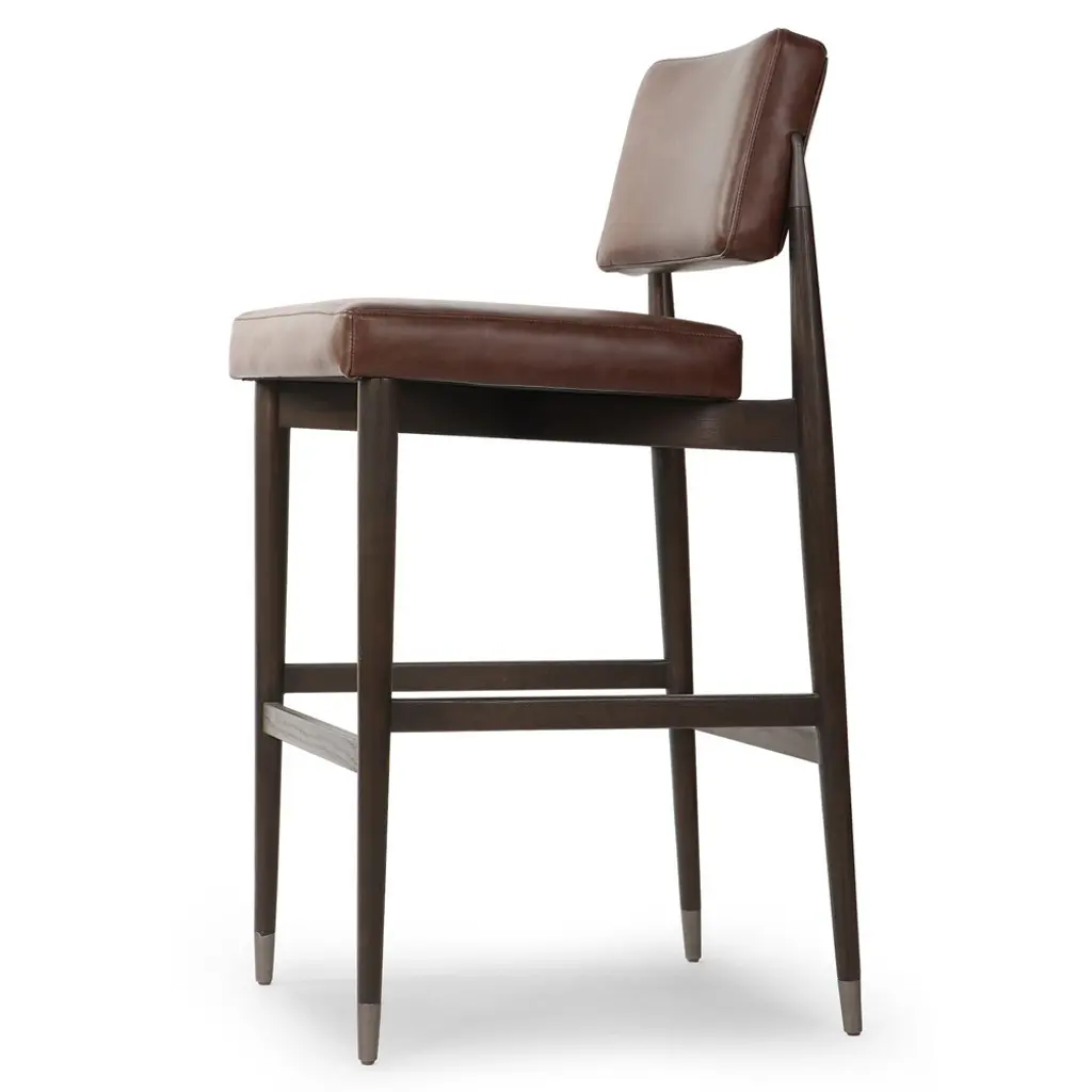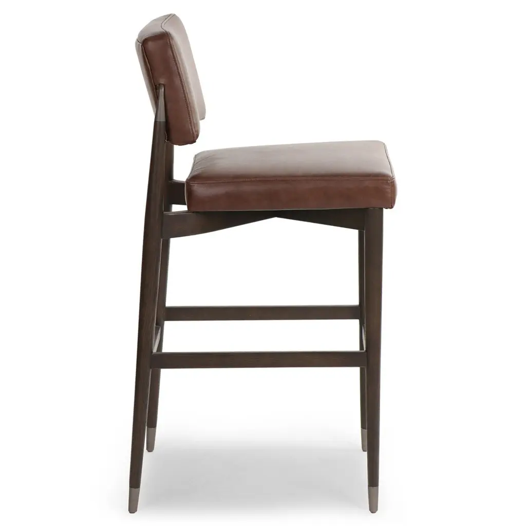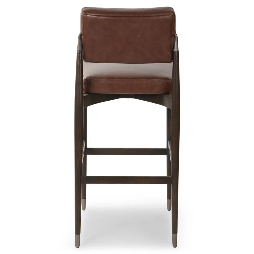 Eli Rustic Lodge Brown Leather Oak Wood Bar Stool