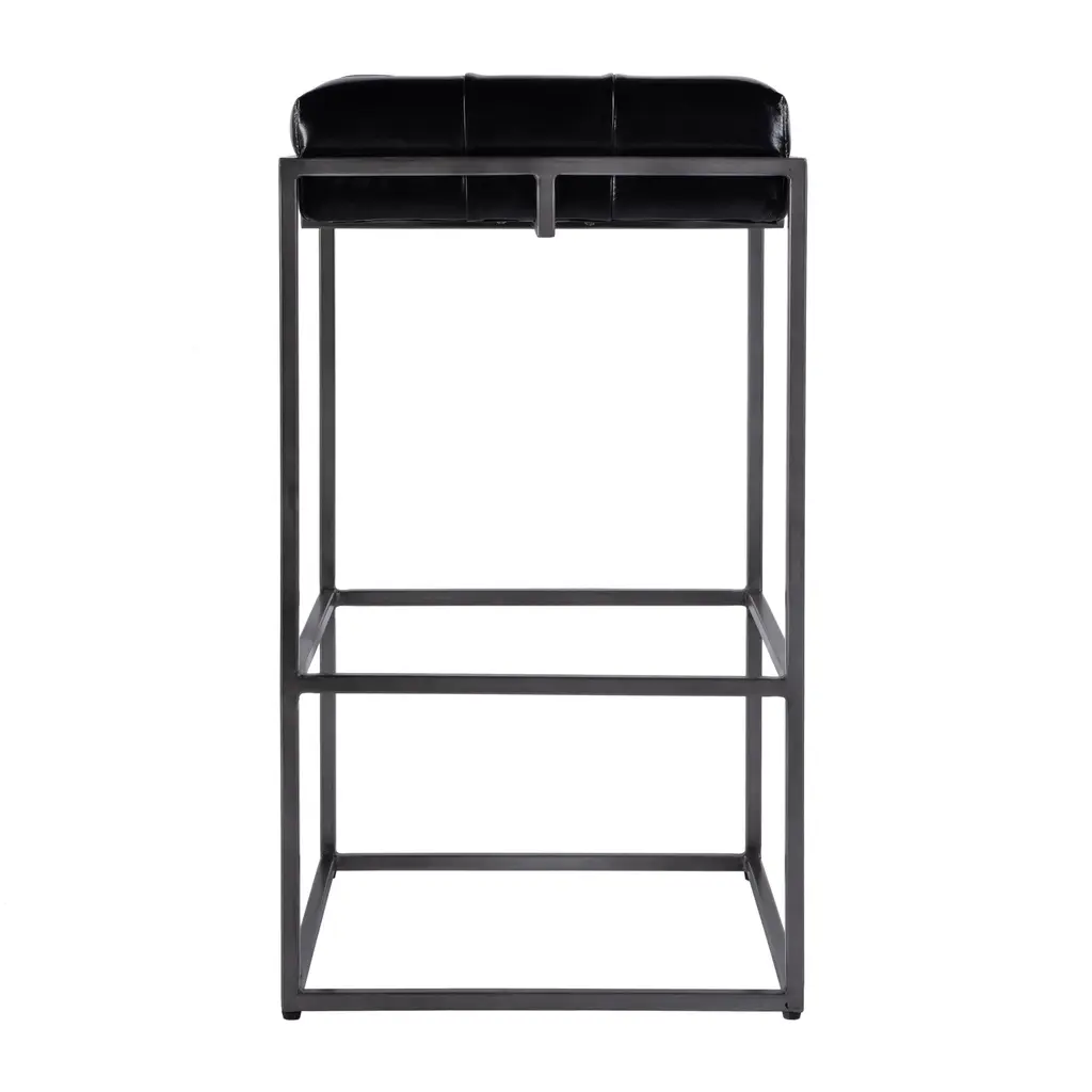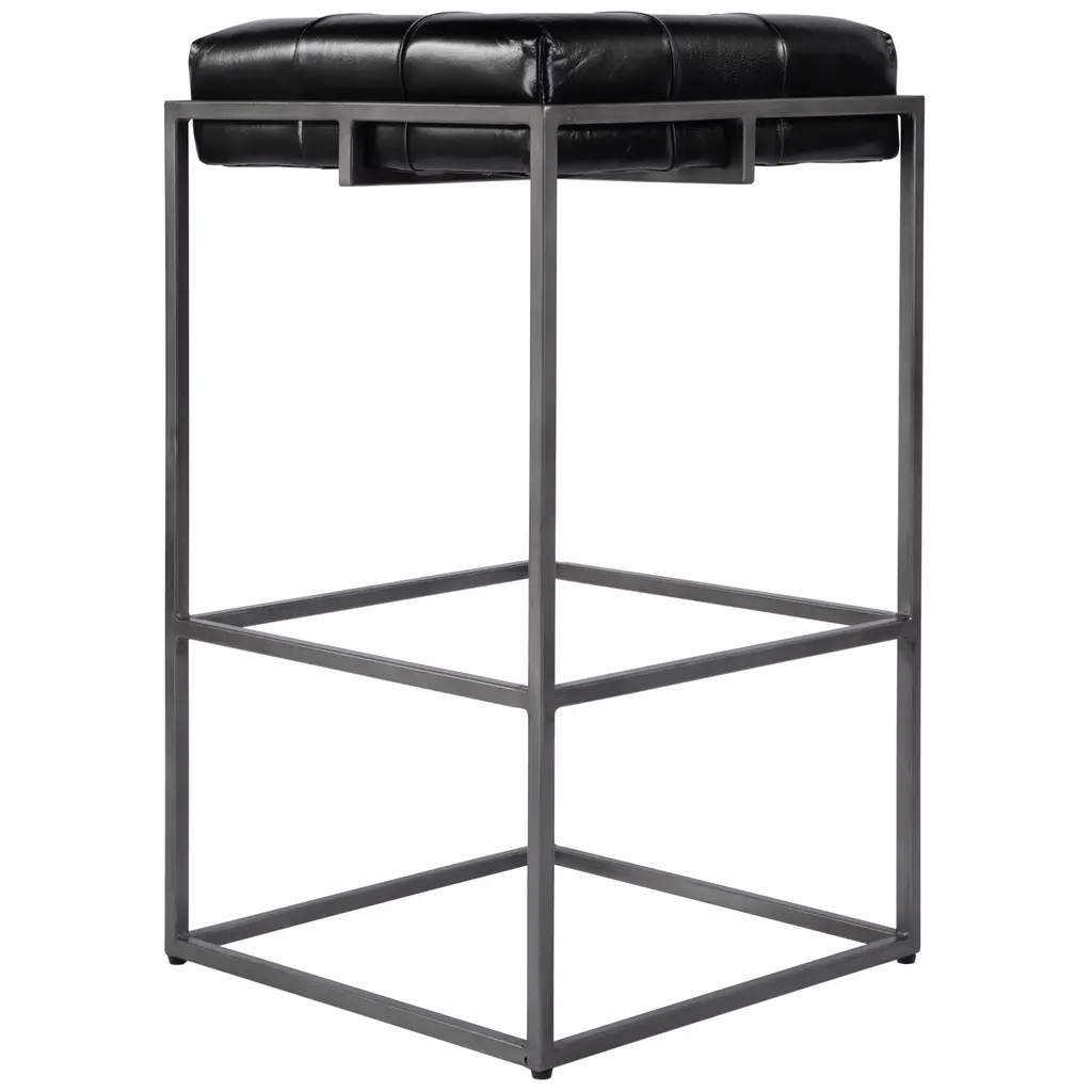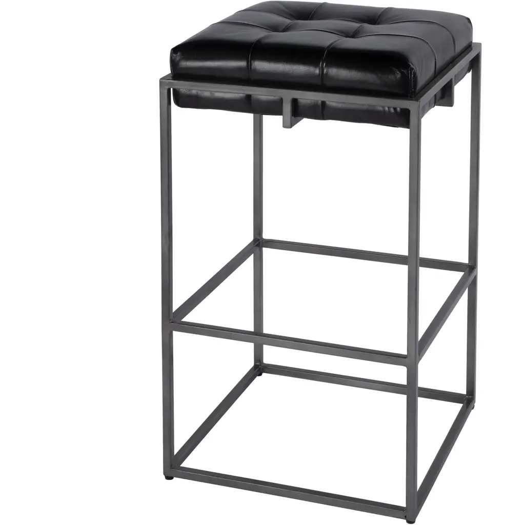 Elowen Tufted Leather Bar Stool, Black