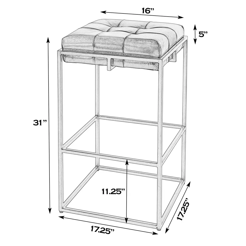 Elevate your bar area with the Elowen 31 in. Seat Height Tufted Leather and Iron Backless Bar Height Stool with Footrest, designed to make a statement in any setting. The rich, genuine leather seat complements the robust iron frame, creating a modern, industrial look that exudes sophistication and charm. With a convenient footrest that enhances comfort, this stool is perfect for your higher kitchen island or home bar, inviting friends and family to gather and enjoy every moment together. Its timeless design seamlessly blends with various decor styles, making it a versatile addition to your home.