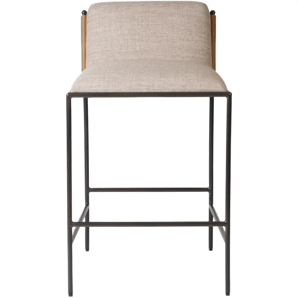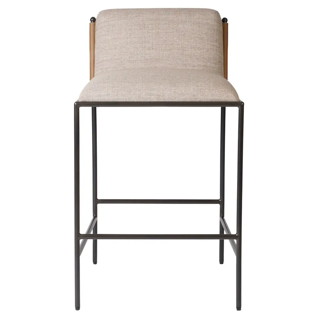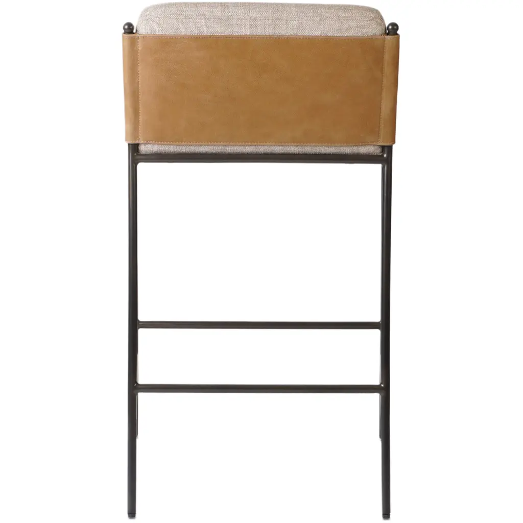 Elsie Leather-back Bar Stool, Alcala Wheat Linen