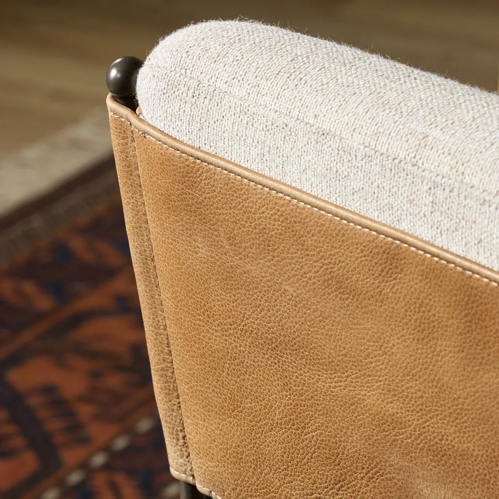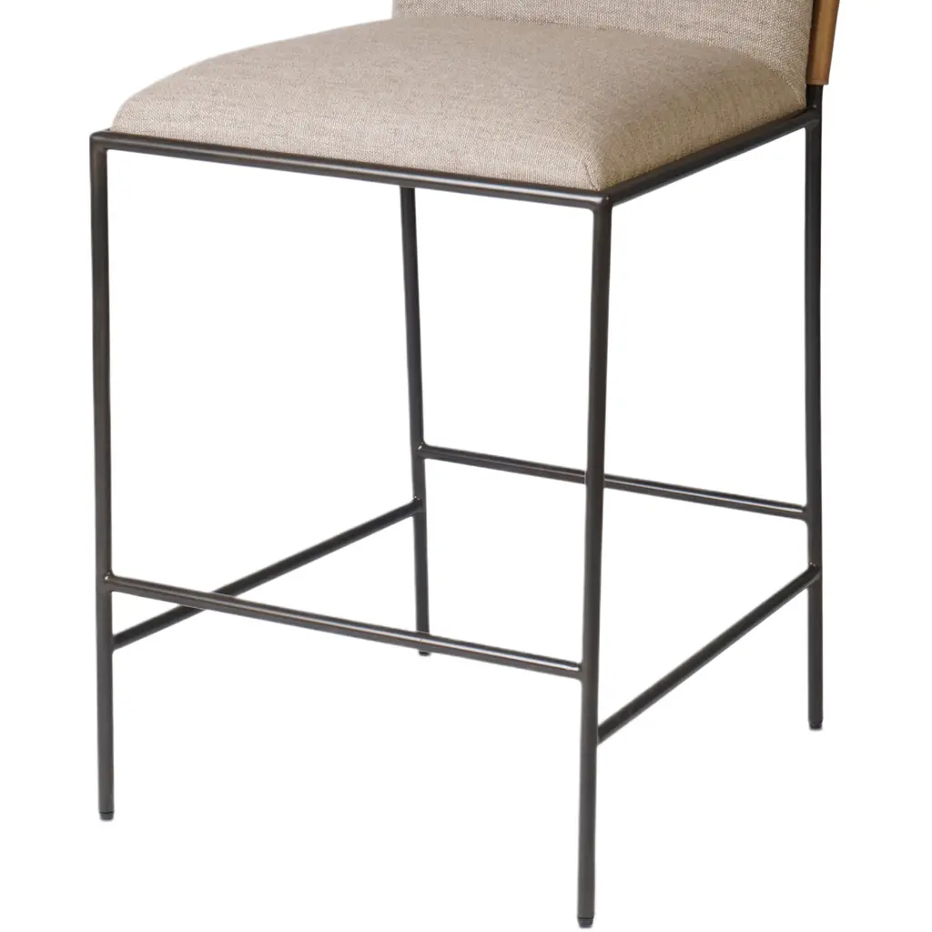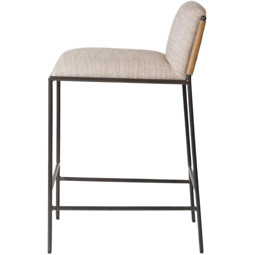 Elsie Leather-back Bar Stool, Alcala Wheat Linen