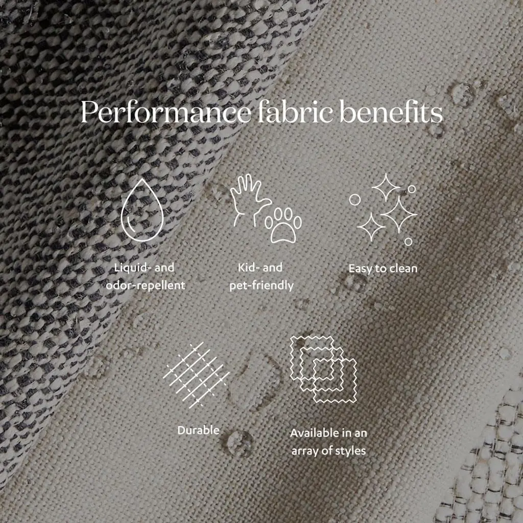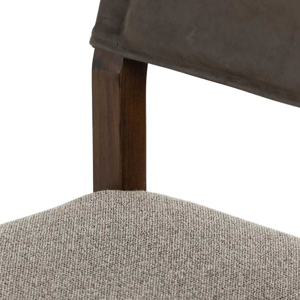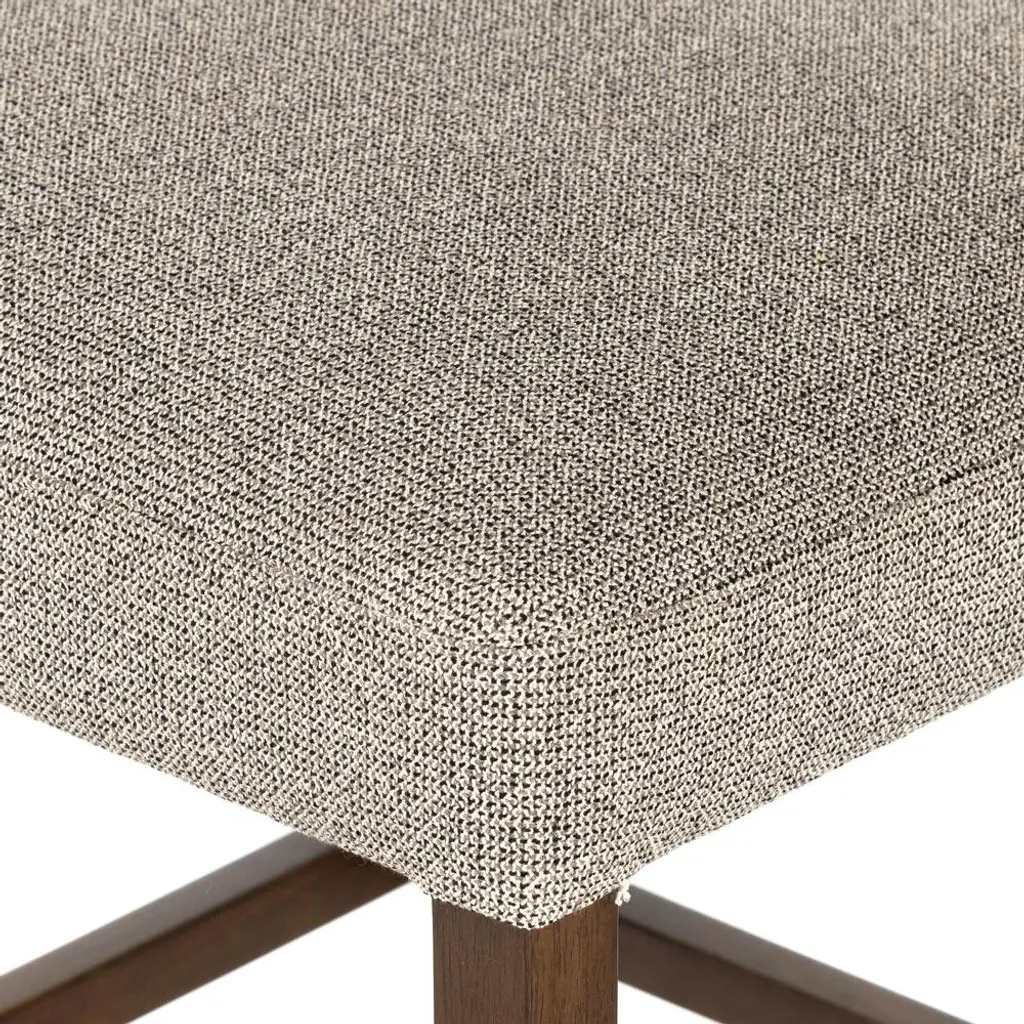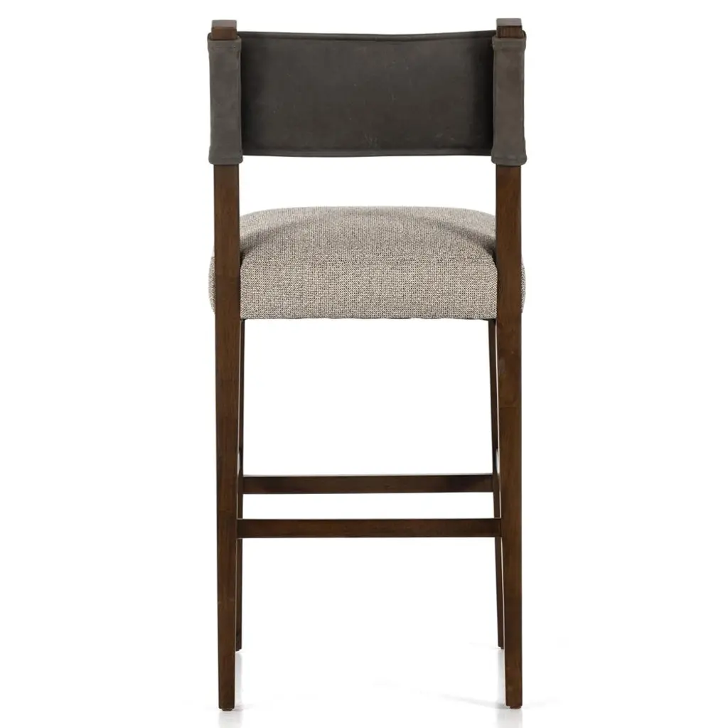 Bring a rustic lodge aesthetic to your home with the Ely bar stool. An antique sable-finished parawood frame and charcoal top-grain leather backing highlight the warmth of mixed natural materials. The seat is upholstered in performance ink grey fabric, a durable textile designed to withstand spills and stains with ease.