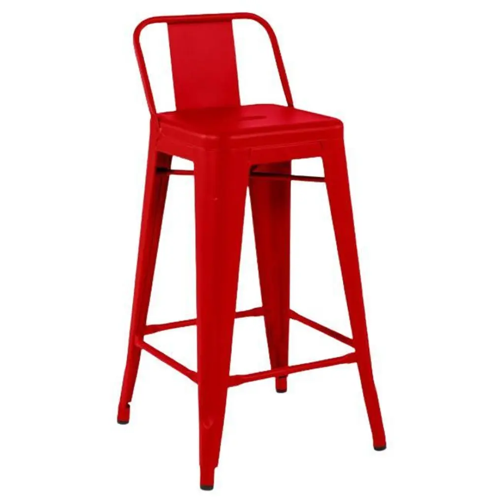Create an eclectic look around your pub height dining room table or a set up a cozy space in your kitchen to enjoy a cup of joe and light breakfast with this distressed dining stool. You'll be pleasantly surprised how well these distressed metal bar stools blend in with your existing furnishings. Durably constructed, this bar height stool will instantly modernize your restaurant, cafe, or bar by adding splashes of color. Metal barstools with backs provide a comfortable sitting experience, the full back is ergonomically curved and includes a vertical slat. The lower support braces double as a footrest, promoting proper posture. Drain holes prevent pooling in the center of the seat for a faster turn around to seat customers. For longevity, care should be taken to protect from long periods of wet weather. Whether it's time to update your employee breakroom with some colorful furniture or add some durable seating to your patio furniture collection, this timeless indoor outdoor bar stool delivers.