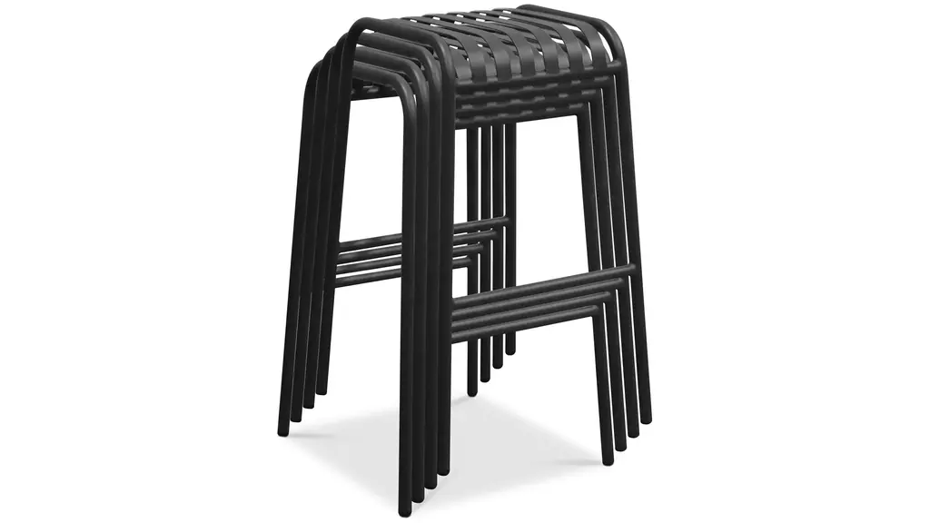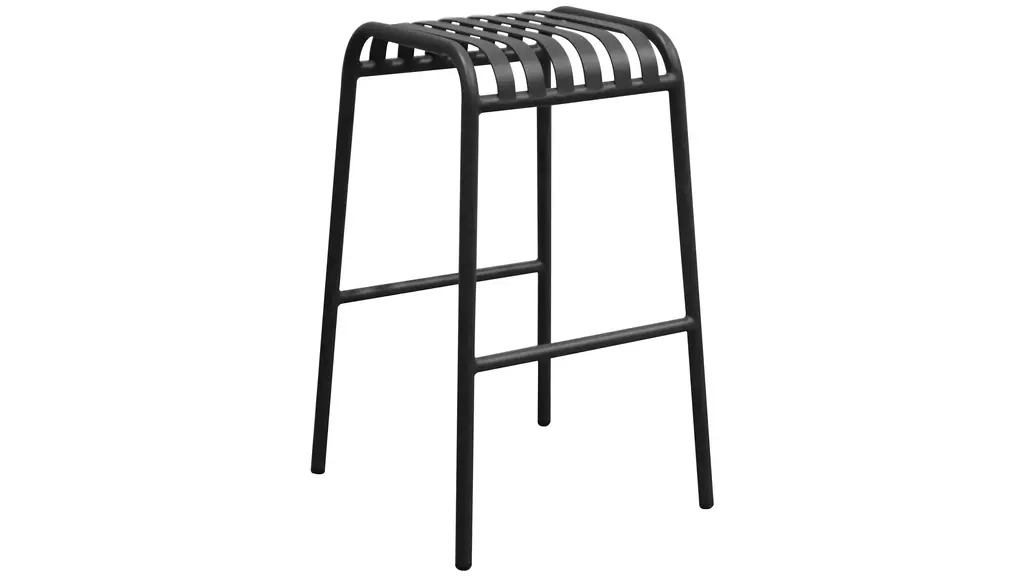 The Enid Outdoor Bar Stool - Set of 2, with its exquisite slat design and gleaming surface, makes it look great on your patio, in your garden, or anywhere else indoors or out. Made of powder-coated steel, this stool is rust, corrosion, and water-resistant for long-lasting use.