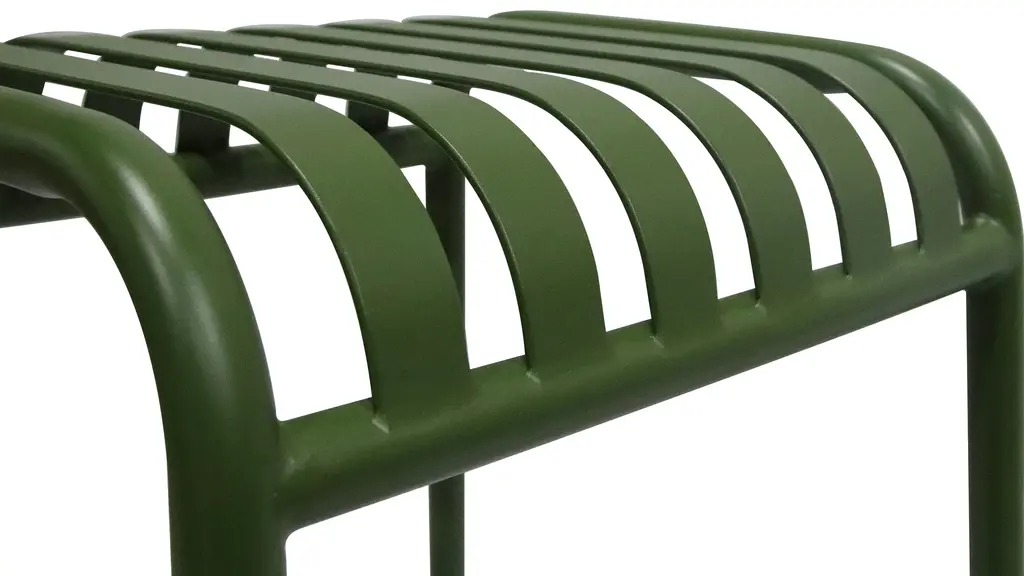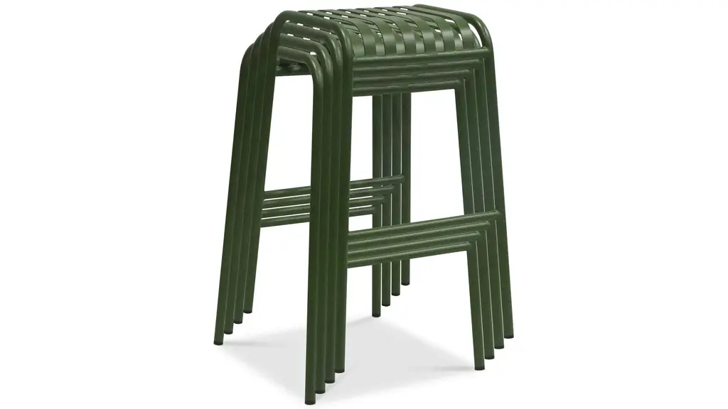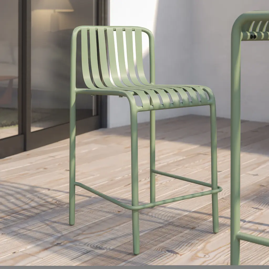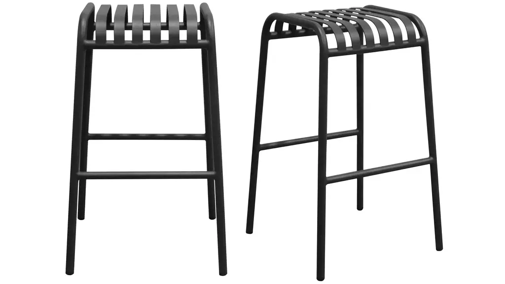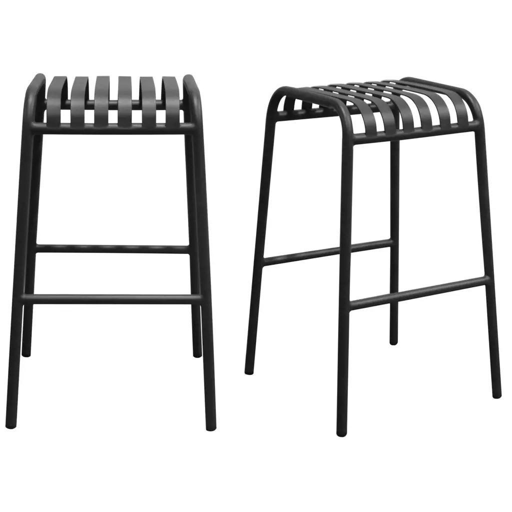 The Enid Outdoor Bar Stool - Set of 2, with its exquisite slat design and gleaming surface, makes it look great on your patio, in your garden, or anywhere else indoors or out. Made of powder-coated steel, this stool is rust, corrosion, and water-resistant for long-lasting use.