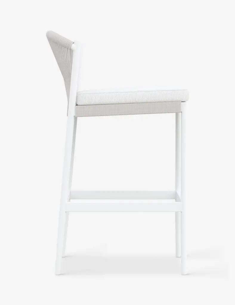 The Esparza stool brings refined design to a livable indoor-outdoor style. The slim but sturdy aluminum frame is finished in matte white with a linear all-weather rope weave augmenting its clean, spare lines. This bar stool is a great addition to an al fresco snack bar or casual living spacetopped with a performance cushion for comfort and elegance.