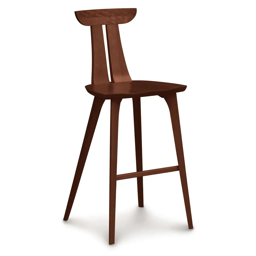With its sexy curves and long legs, the Copeland Furniture Estelle Bar Stool is the supermodel of bar stools. And while slender in appearance, solid wood construction and the strategic addition of a footrest ensures the stool's strength and stability. Choose between a variety of finishes to enhance your kitchen, dining room or bar area.