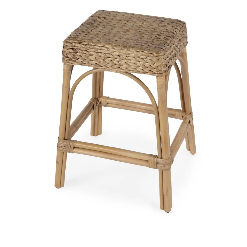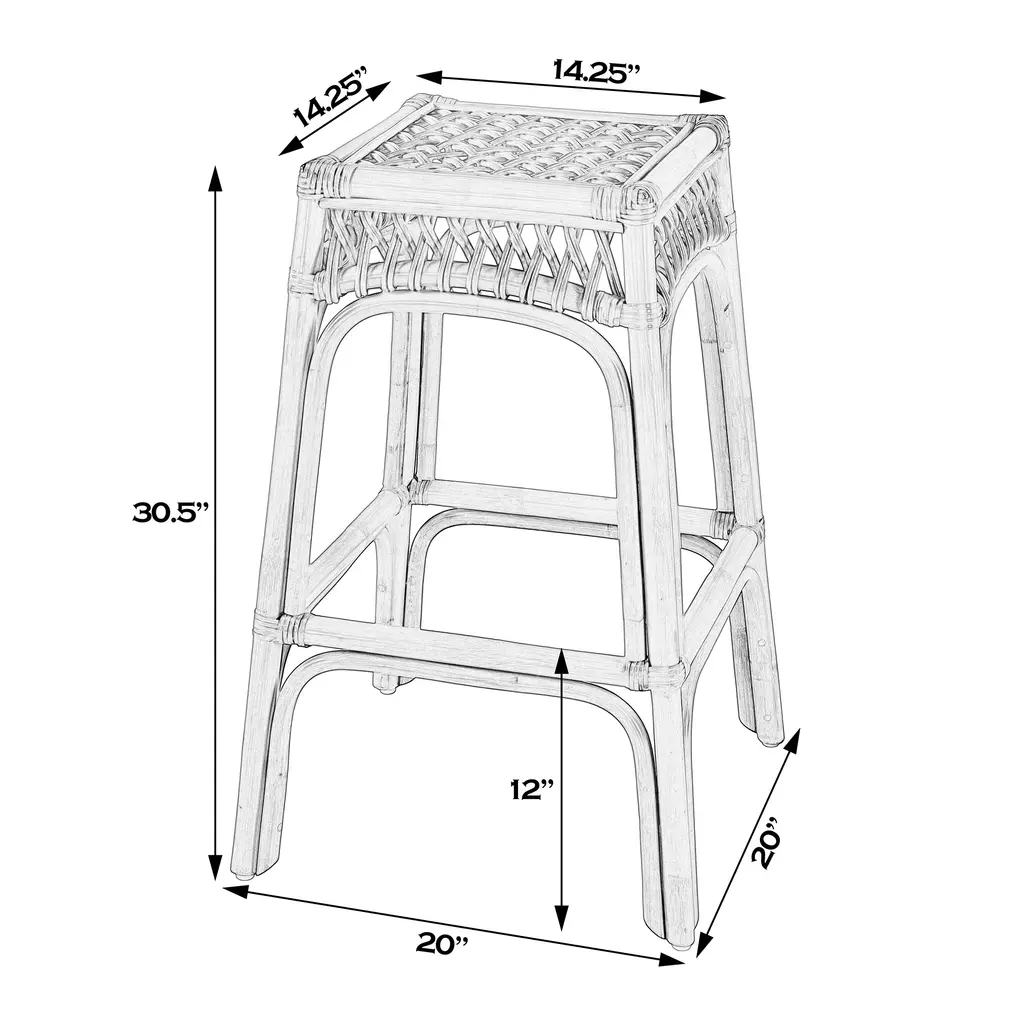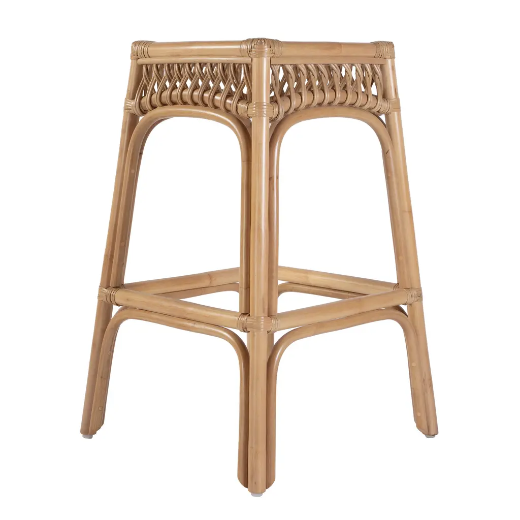 Evric Square Bar Stool, Natural Rattan