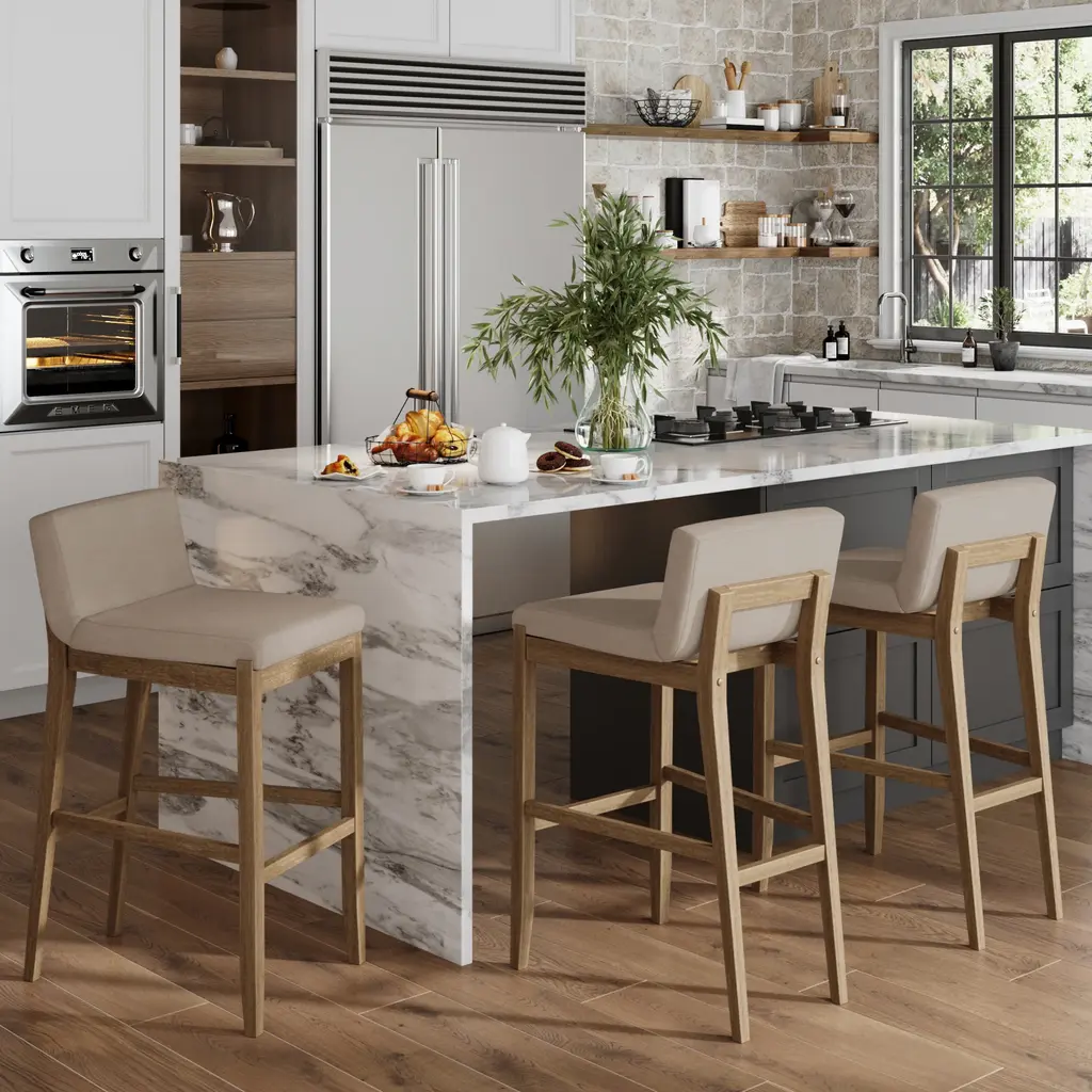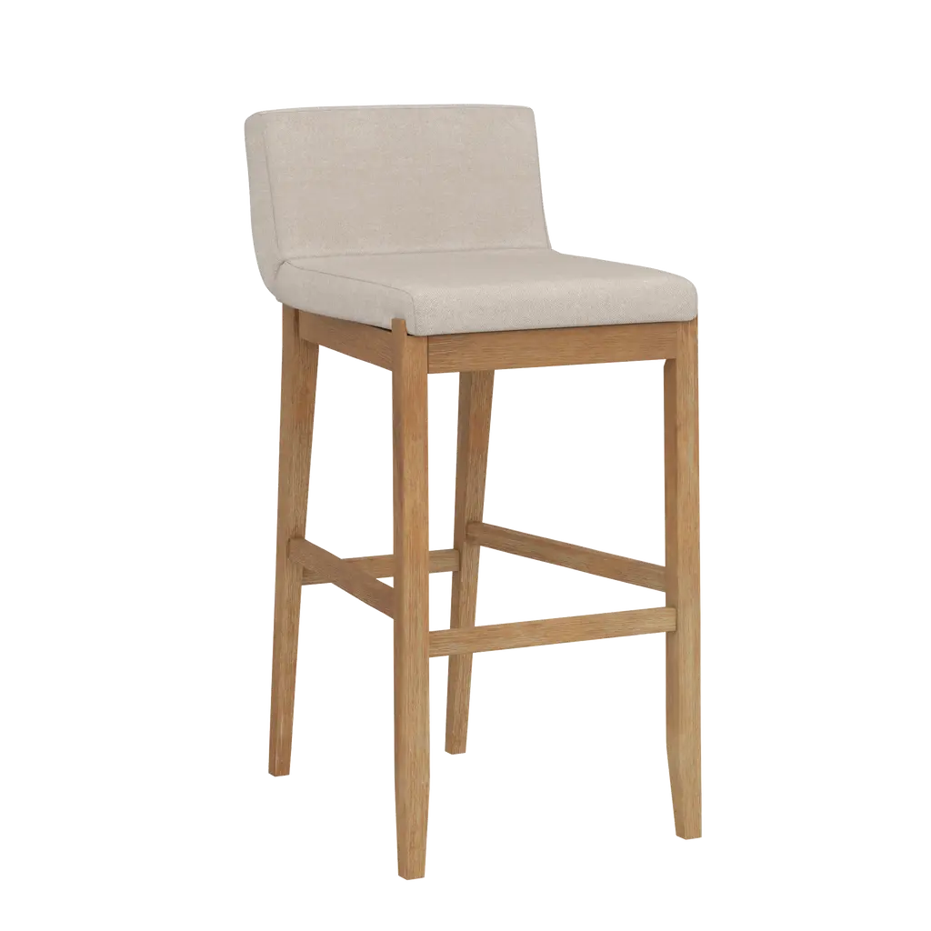 Kick your feet up in style with our Gracie bar stool. With an exposed wood back and sleek modern design, Gracie is sure to stun. Gracie combines a wire brushed light brown wood finish and a natural flax cushion for ultimate comfort and style. It boasts a modern silhouette with tapered legs and a curved seat, making this bar stool the star of any kitchen. So grab your drink of choice and sit back in full comfort on these made-to-last bar stools.
