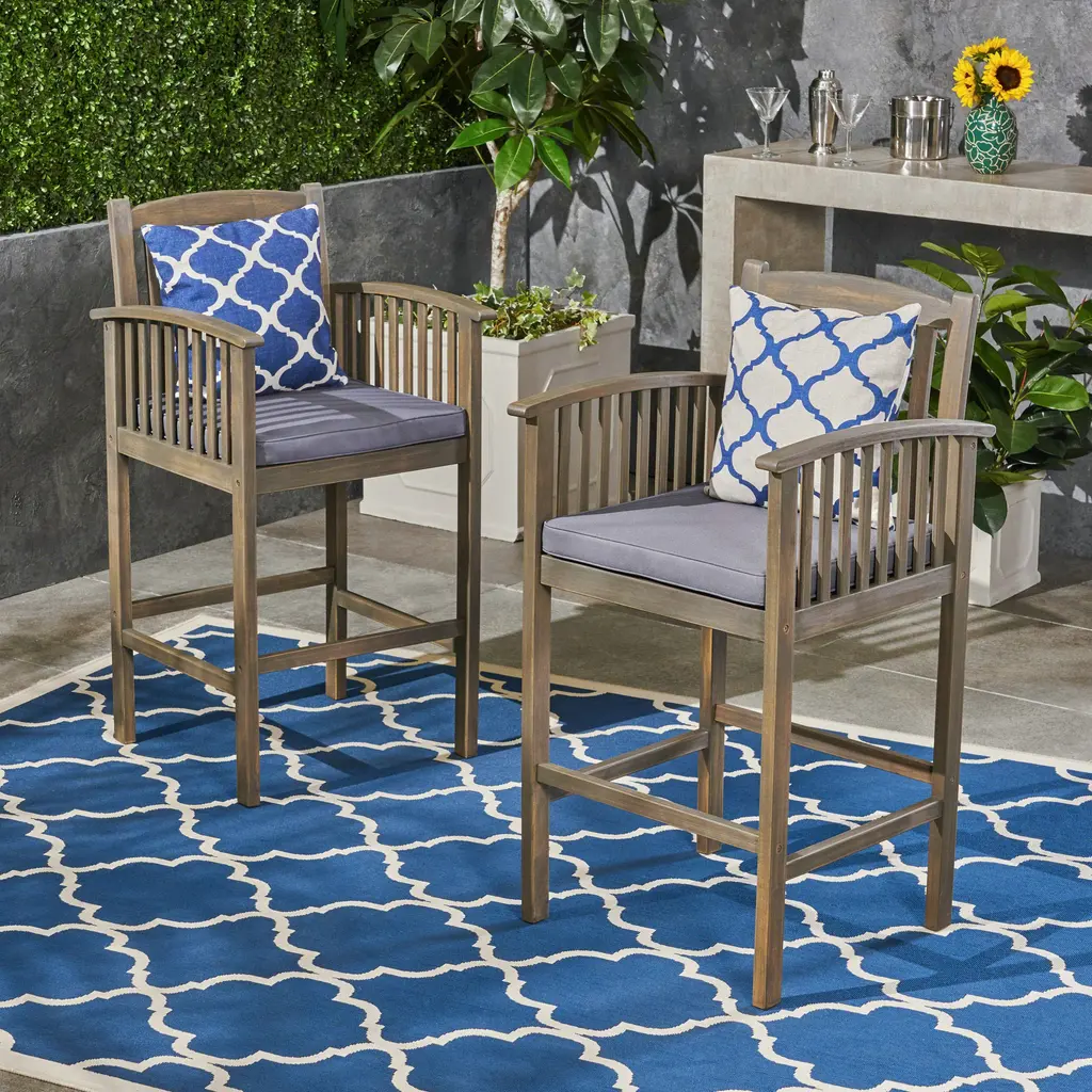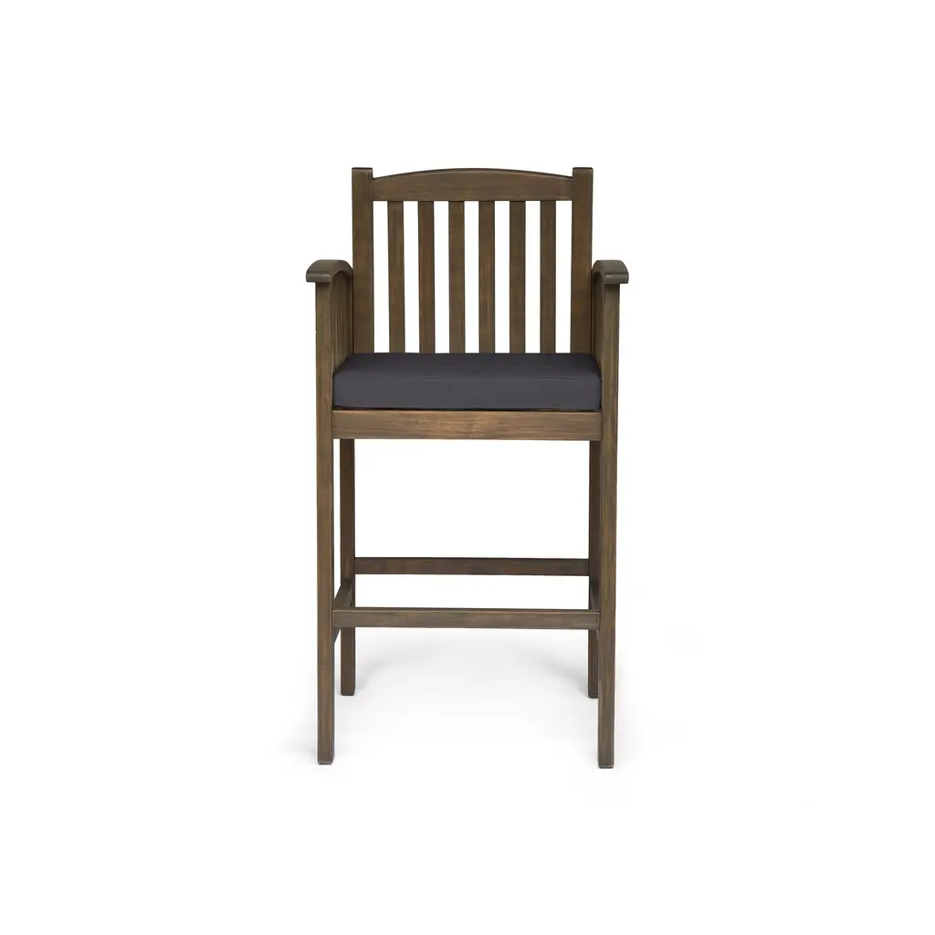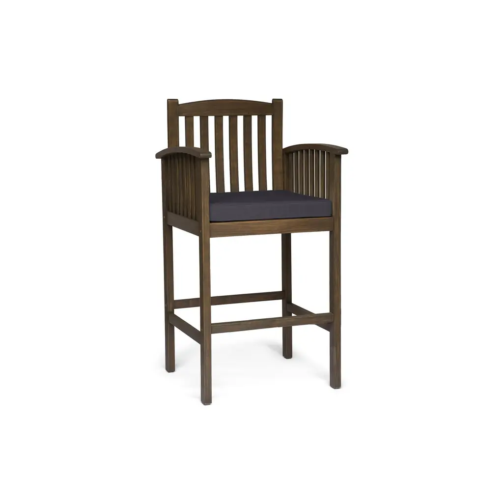 This barstool is a remarkable addition to your home decor. Crafted from acacia wood, it offers both durability and a unique aesthetic. The wood's natural charm brings a touch of the outdoors inside, creating a warm and inviting atmosphere. The slat panel design adds a sophisticated look, while the water-resistant cushions ensure easy maintenance. Whether placed in your kitchen or bar area, this barstool is sure to enhance your space and provide a comfortable seating option. Its timeless appeal makes it a perfect choice for those seeking quality and style.