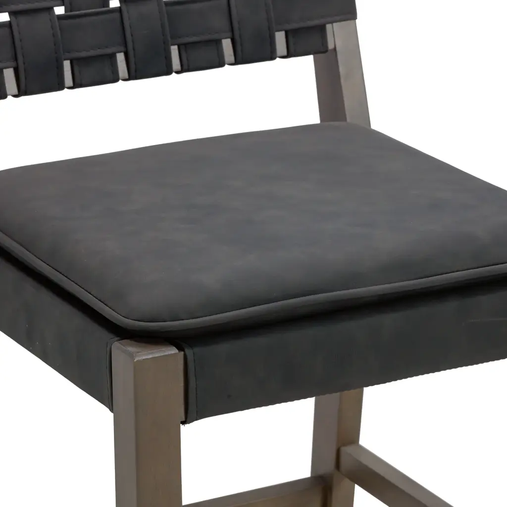 Faux Leather Woven Bar Stool Black