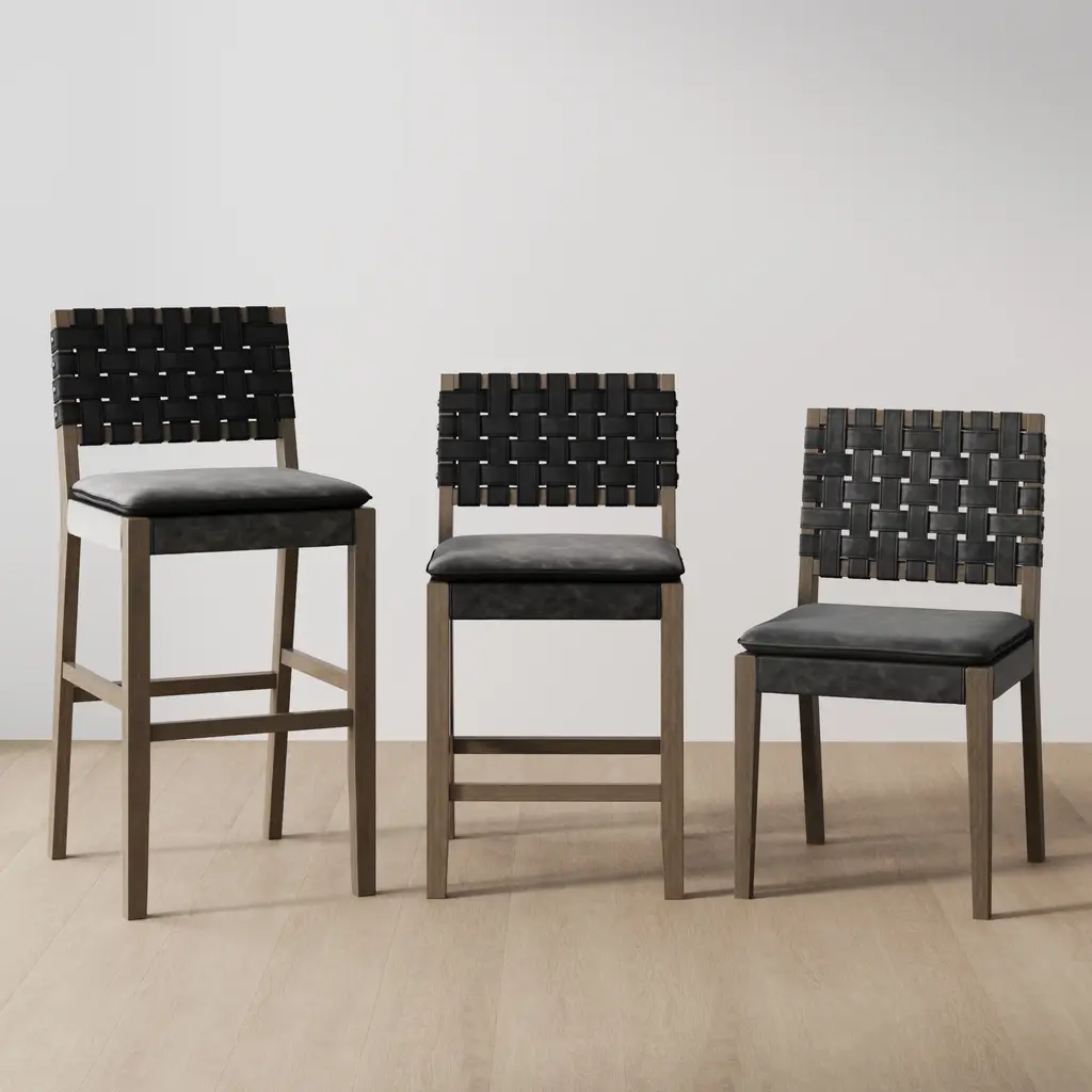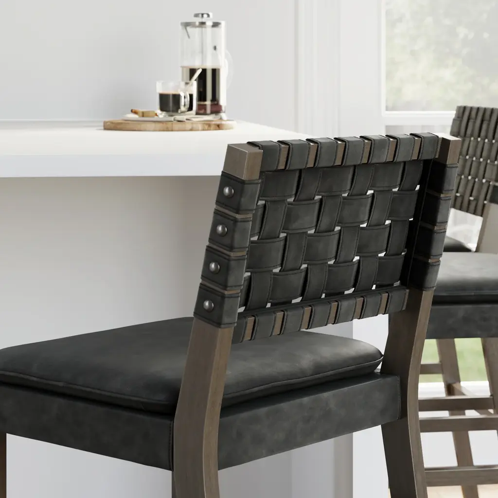 Grab your favorite drink and sit comfortably for hours on the Cohen bar stool. Cohen's solid wood frame has a hard wearing painted finish and is complemented by a brushed black leather back that adds sophistication to your kitchen, even when tucked and hidden under the counter. We even added a comfortable padded saddle seat with rounded corners and perfectly placed foot rests. If you take a closer look you'll see studs on the side of the chair—a detail too luxurious to miss! With an easy 25 minute assembly time, you won't regret grabbing more than one!