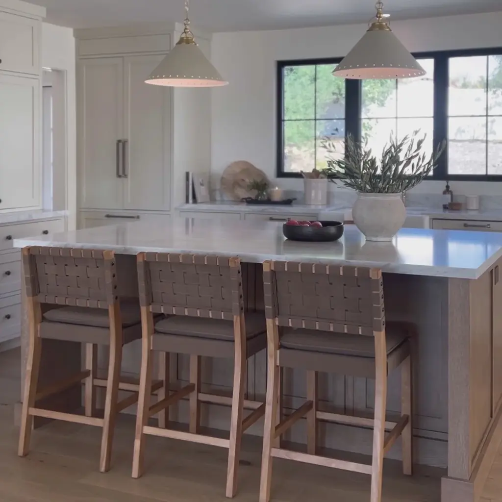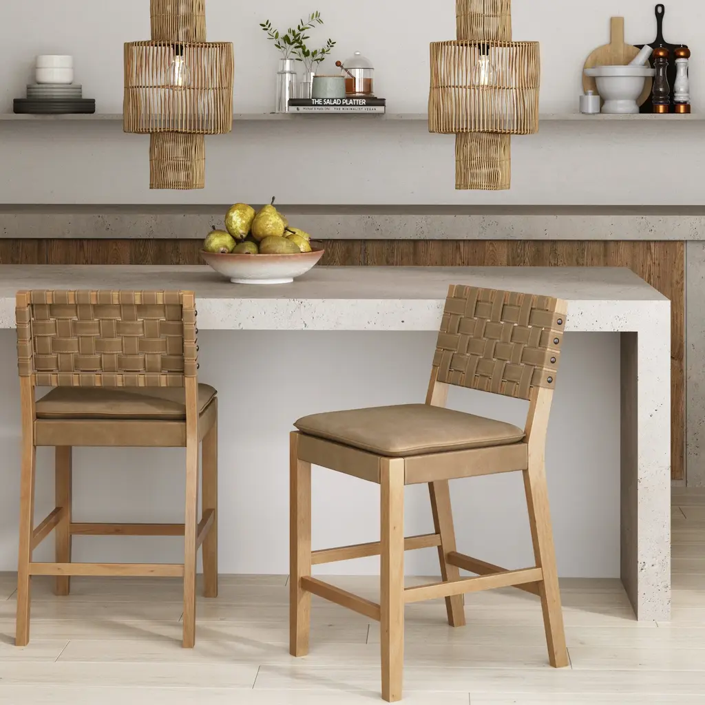 Grab your favorite drink and sit comfortably for hours on the Cohen bar stool. Cohen's solid wood frame has a hard wearing painted finish and is complemented by a woven light brown faux leather back that adds warmth to your kitchen, even when tucked and hidden under the counter. We even added a comfortable padded saddle seat with rounded corners and perfectly placed foot rests. If you take a closer look you'll see studs on the side of the chair—a detail too luxurious to miss! With an easy 25 minute assembly time, you won't regret grabbing more than one!