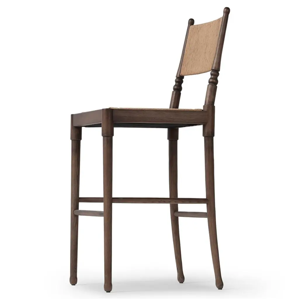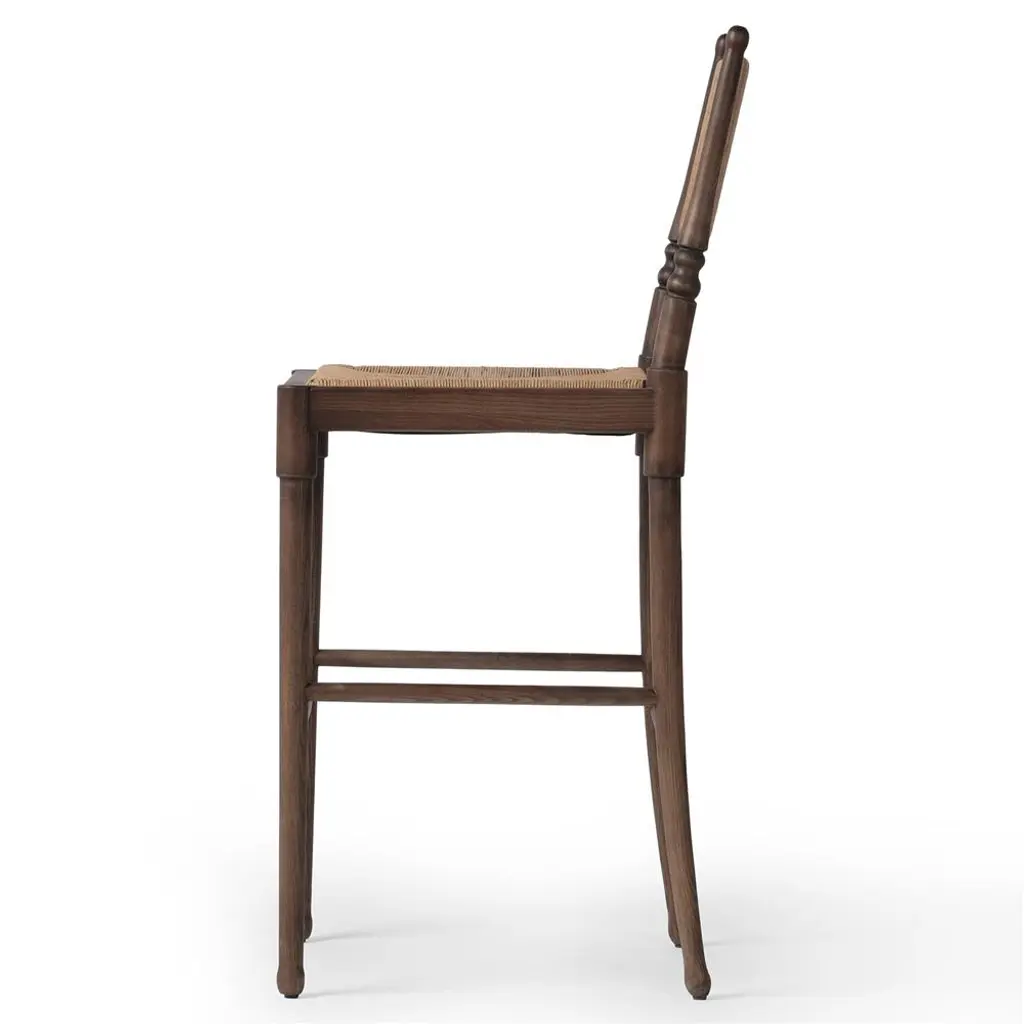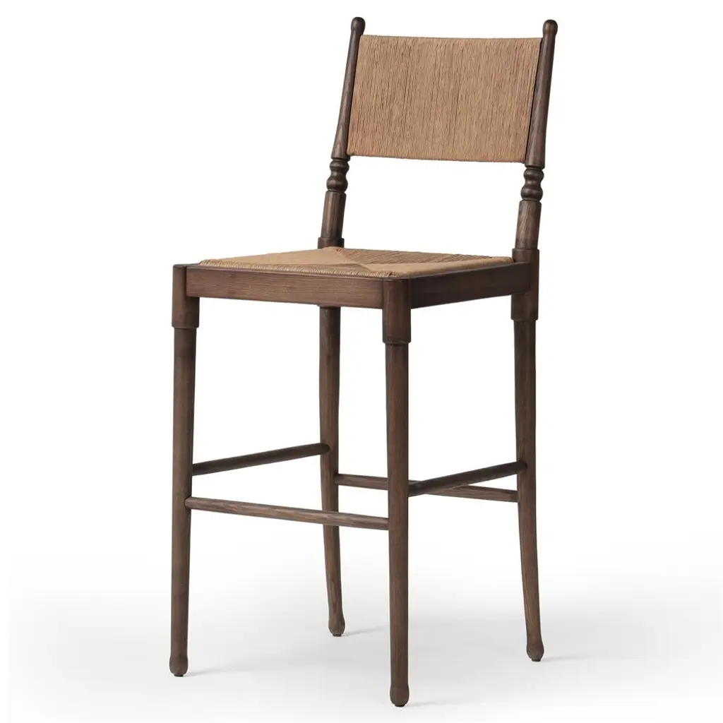 A design collaboration by Amber Lewis and Four Hands.Traditional, updated. The classic turn shape-inspired design is simplified for a clean look in this antique walnut bar stool, balanced with slightly curved legs for a softened look. Complemented by a soft paper cord back.