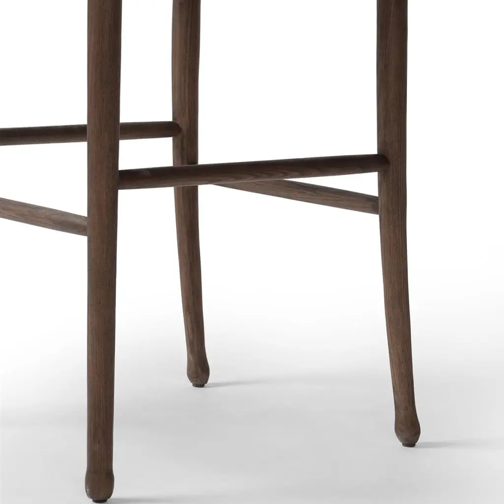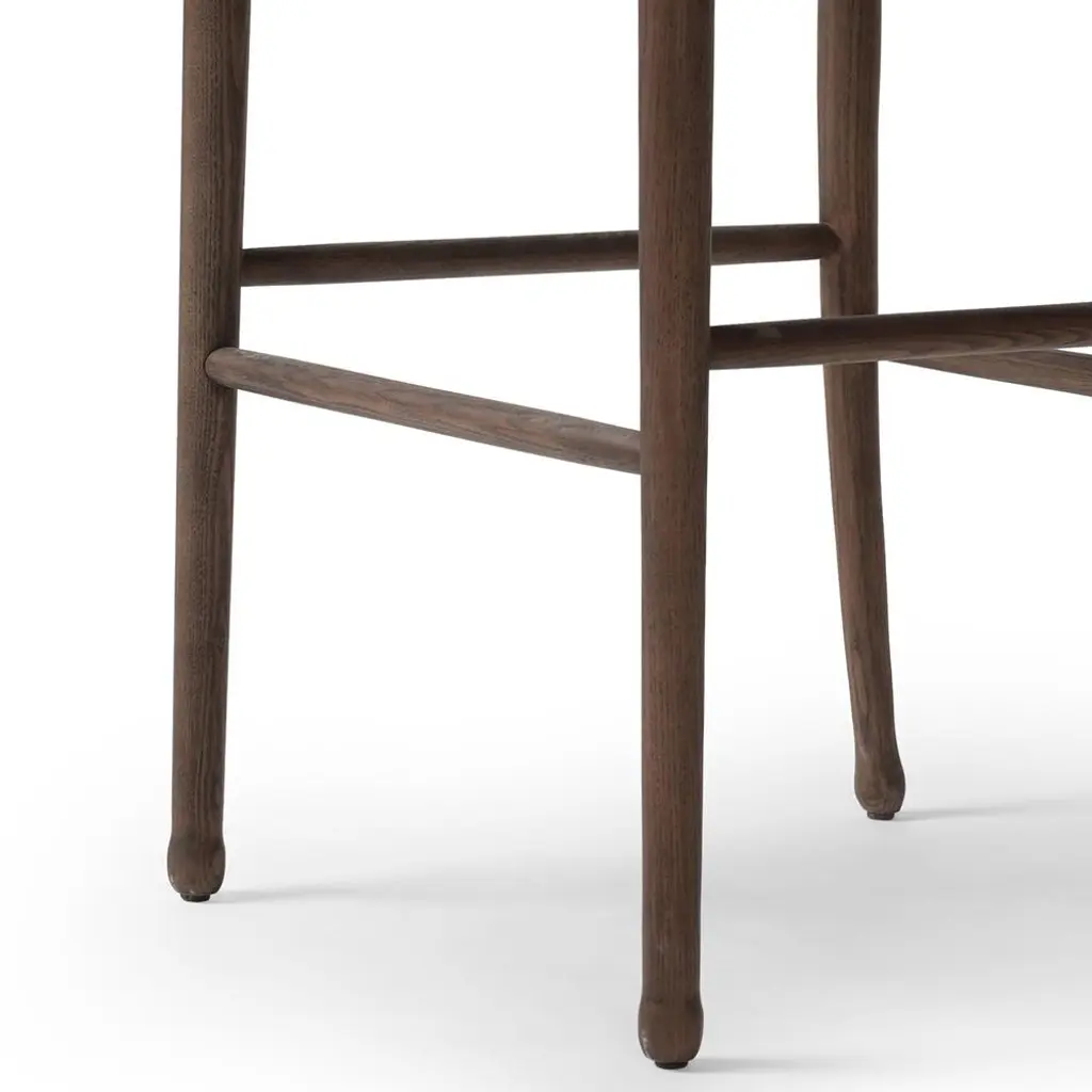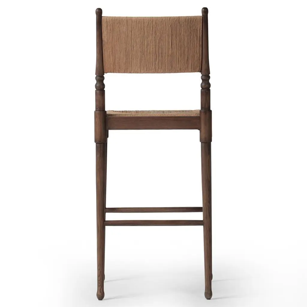 A design collaboration by Amber Lewis and Four Hands.Traditional, updated. The classic turn shape-inspired design is simplified for a clean look in this antique walnut bar stool, balanced with slightly curved legs for a softened look. Complemented by a soft paper cord back.