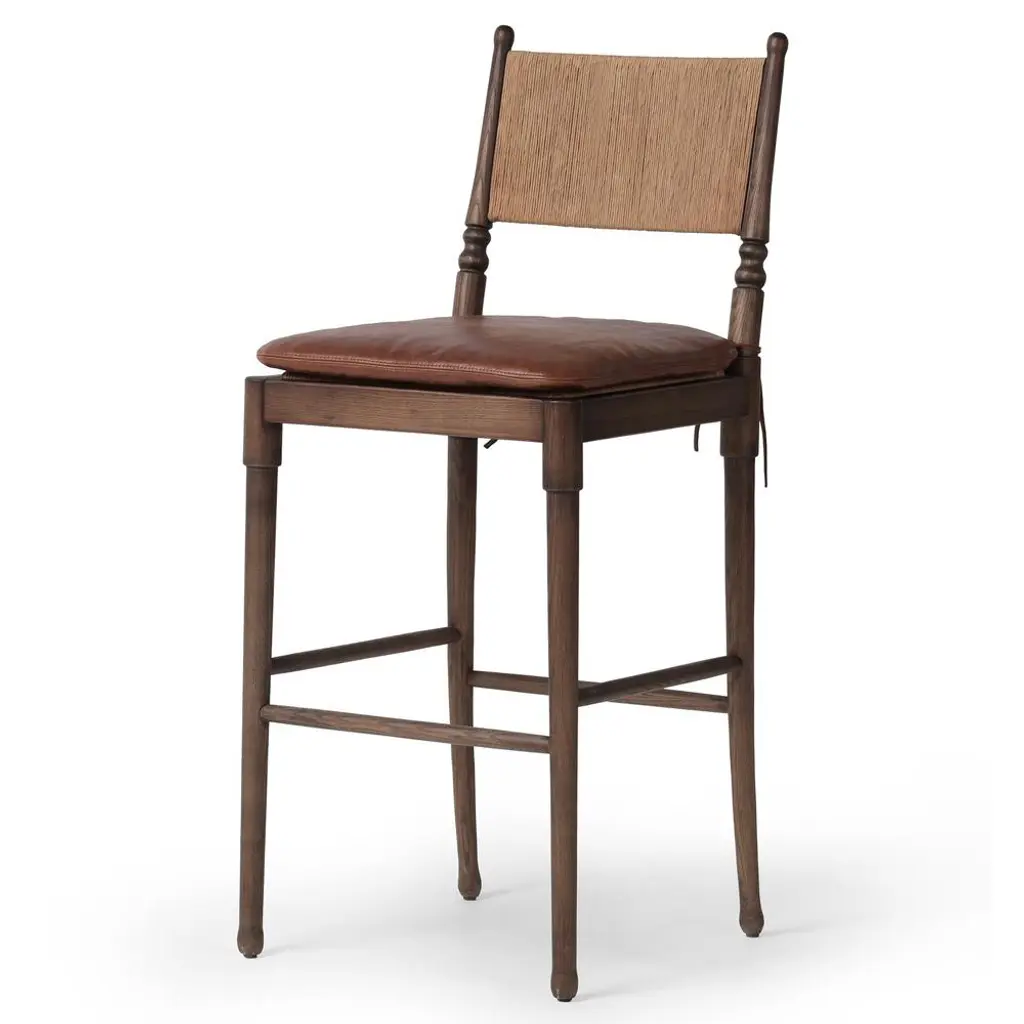 Fayth Dulane Mahogany Leather Bar Stool