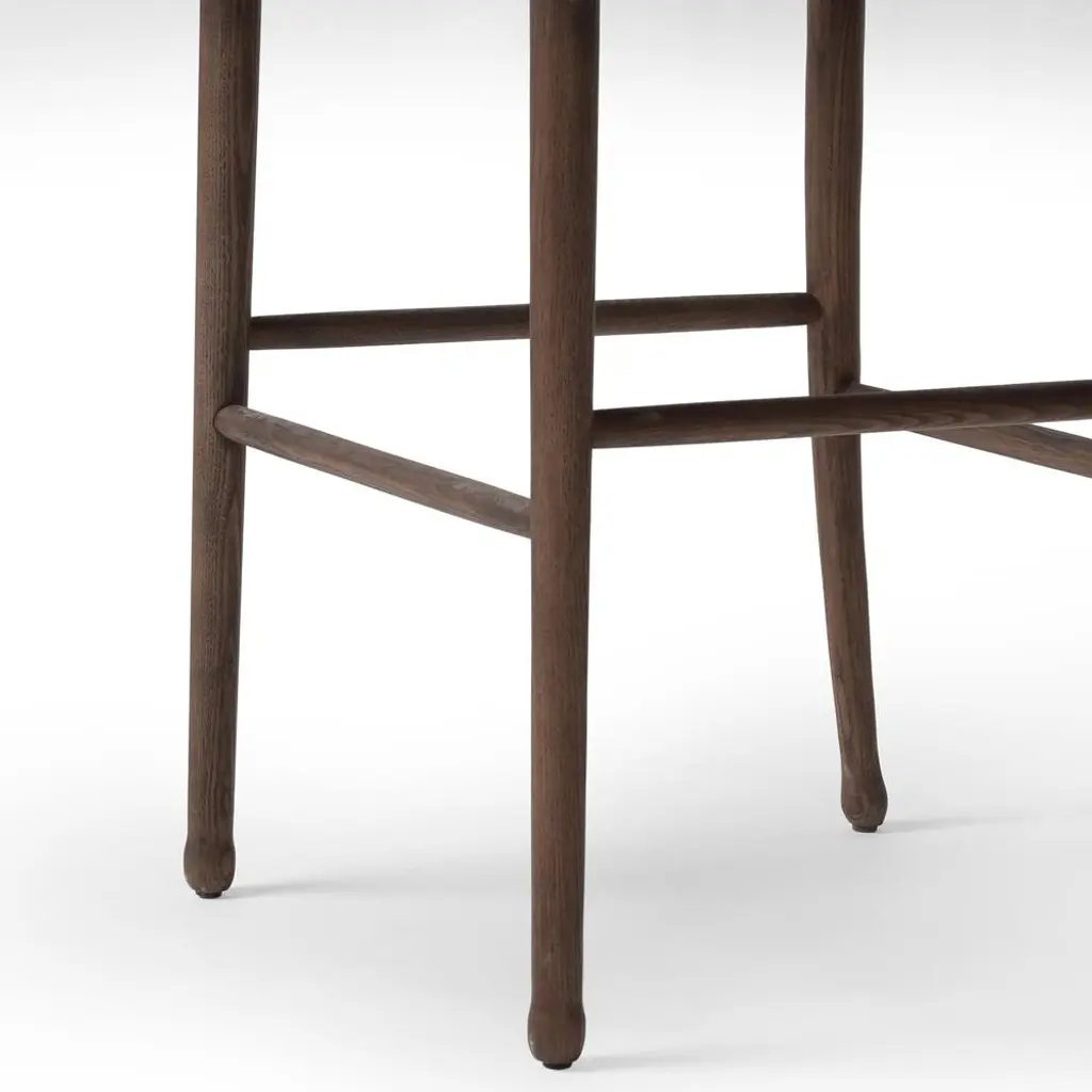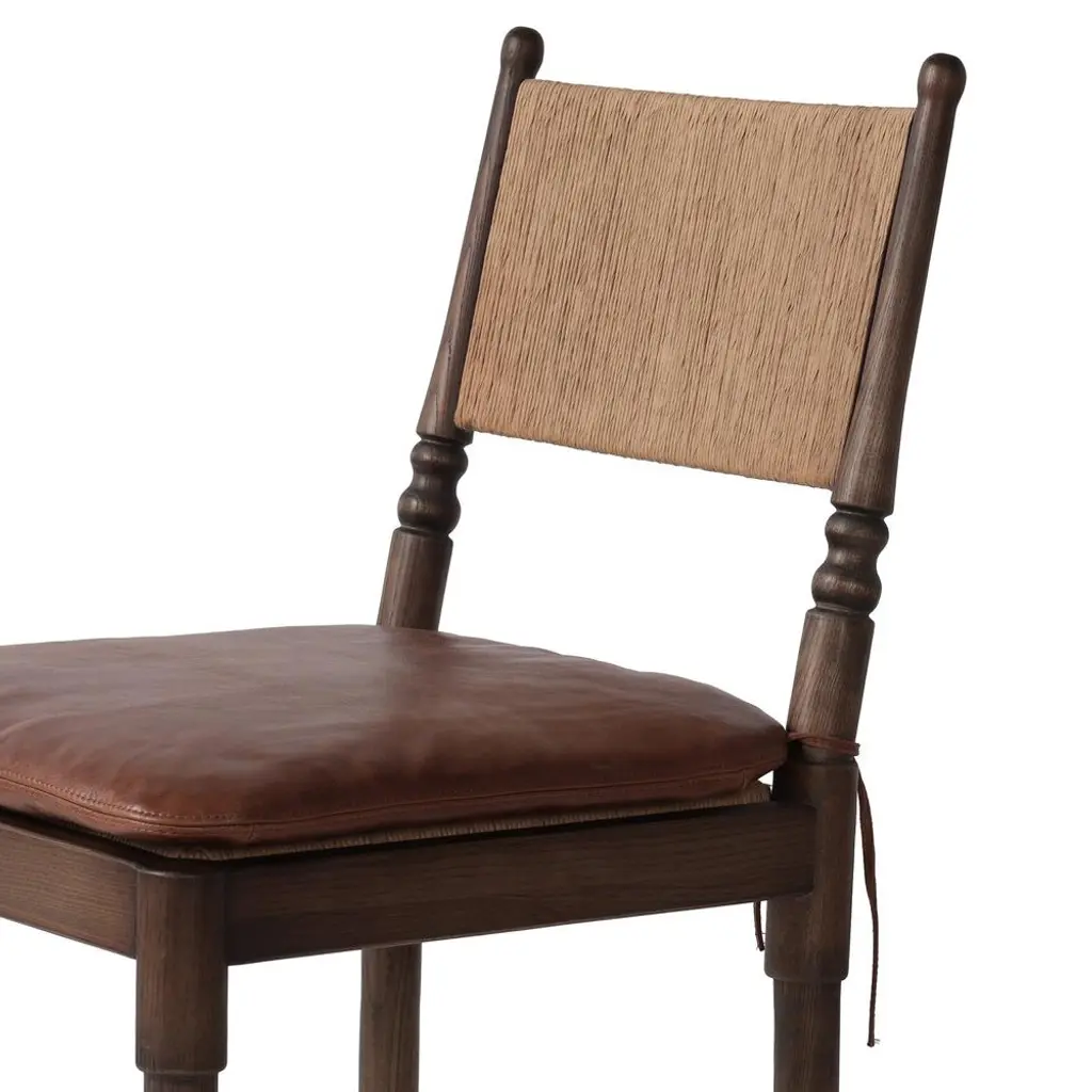 A design collaboration by Amber Lewis and Four Hands.Classic meets current. Simplified turn shaping meets subtly curved legs to elevate a clean, traditional frame of walnut-finished solid ash. A brown top-grain leather cushion complements a back rest of textural paper cord.