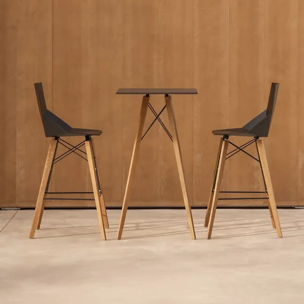 Enjoy more of your countertop or home bar space with the Vondom Faz Wood Barstool - Set of 4. This stylishly modern barstool is made from injected propylene and is 100% recyclable, minimizing the impact on the environment during production. This shock-resistant, lightweight elevated barstool is an ultra-stylish and stable approach to laying out your space. Use this dynamic furniture piece to round out the look of your countertop, high table or home bar setup.