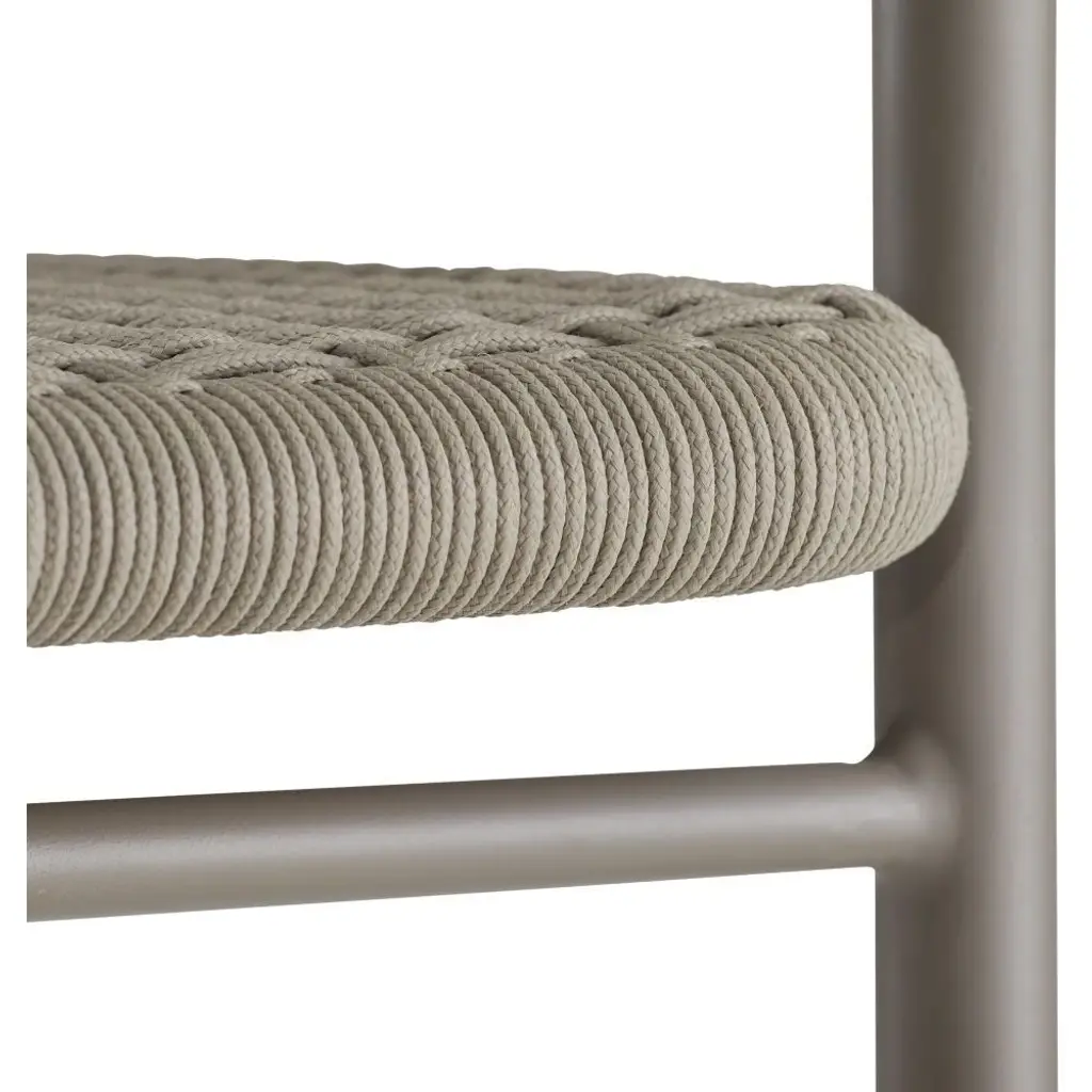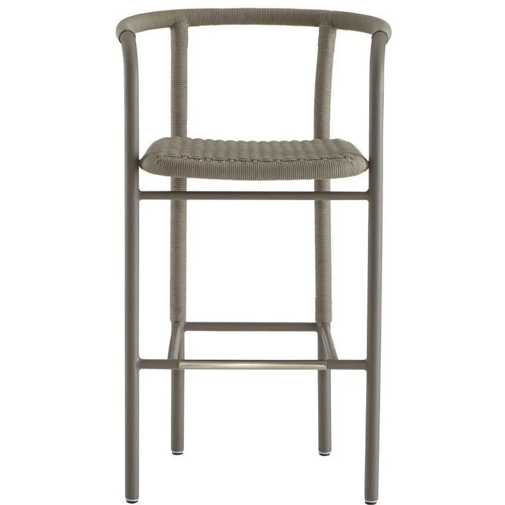 Wrapped woven details elevate the simple, bistro-style body of the Feller. The graphic nature of its aluminum form is highlighted with a tone-on-tone gray powder coat. Finished with a sturdy fossil synthetic rope seat, this contemporary bar stool makes a stylish addition to any outdoor setting.