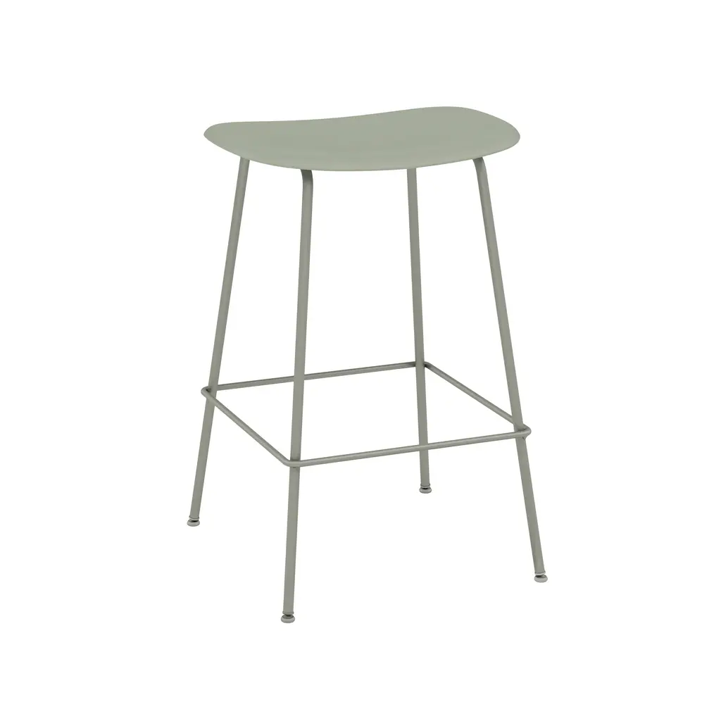 With a visually uncomplicated character, this Fiber barstool features a steel tube base with a powder-coat finish that's color-matched to its molded seat. Adhering to the DNA of Danish brand Muuto's series from designers Iskos-Berlin, this innovative riff on the iconic Scandinavian shell chair utilizes a novel plastic composite made with 25 percent wood fibers. The material has a pleasingly variegated texture and makes for sturdy but refined seating barside or at a kitchen island.