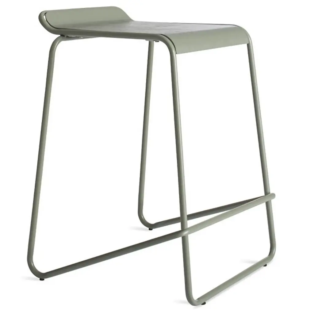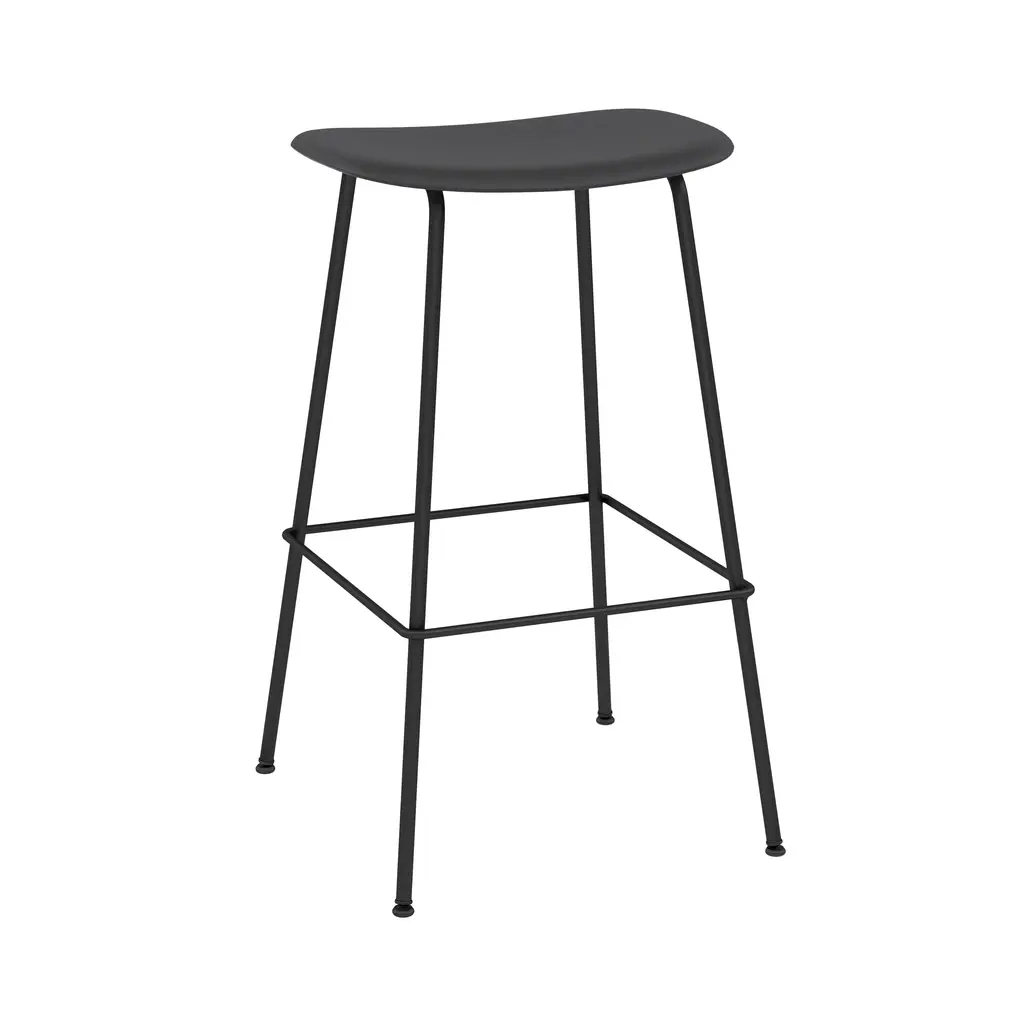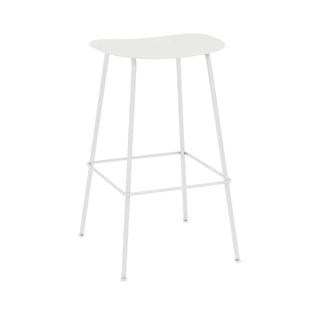 With a visually uncomplicated character, this Fiber barstool features a steel tube base with a powder-coat finish that's color-matched to its molded seat. Adhering to the DNA of Danish brand Muuto's series from designers Iskos-Berlin, this innovative riff on the iconic Scandinavian shell chair utilizes a novel plastic composite made with 25 percent wood fibers. The material has a pleasingly variegated texture and makes for sturdy but refined seating barside or at a kitchen island.