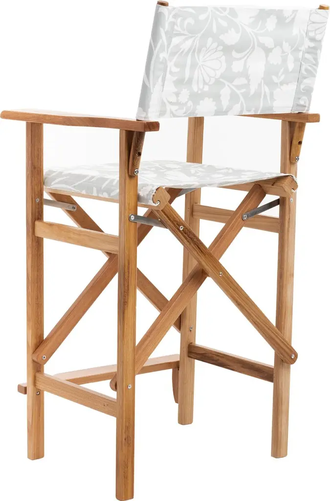 Designed exclusively for One Kings Lane: The fresh floral motif on this bar-height chair's back and seat is just one element that makes it a standout. The foldable frame is made of teak, which is water-resistant as well as virtually impervious to cracking, warping, and decay. And because the chair weighs only nine pounds, you can easily carry it wherever you need it.