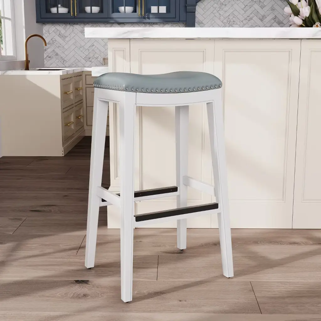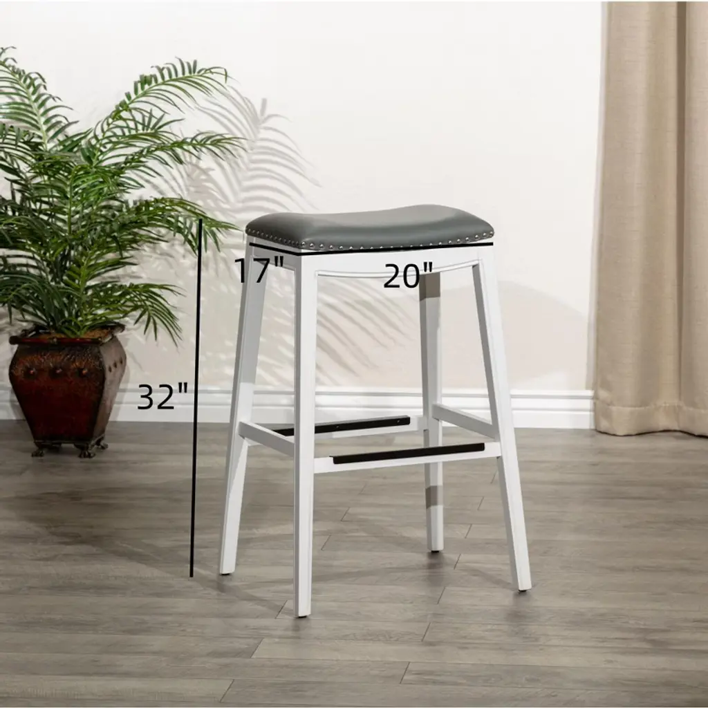 Fontoi 32" Upholstered Barstools With Gray Leather Seat, Bar Stools Without Backs For Living Room Kitchen, White, 17"*32"*20"