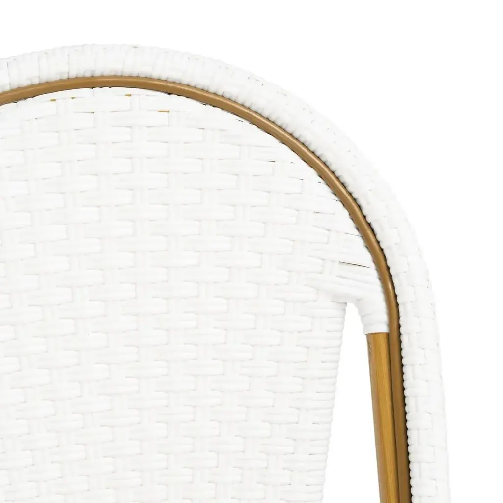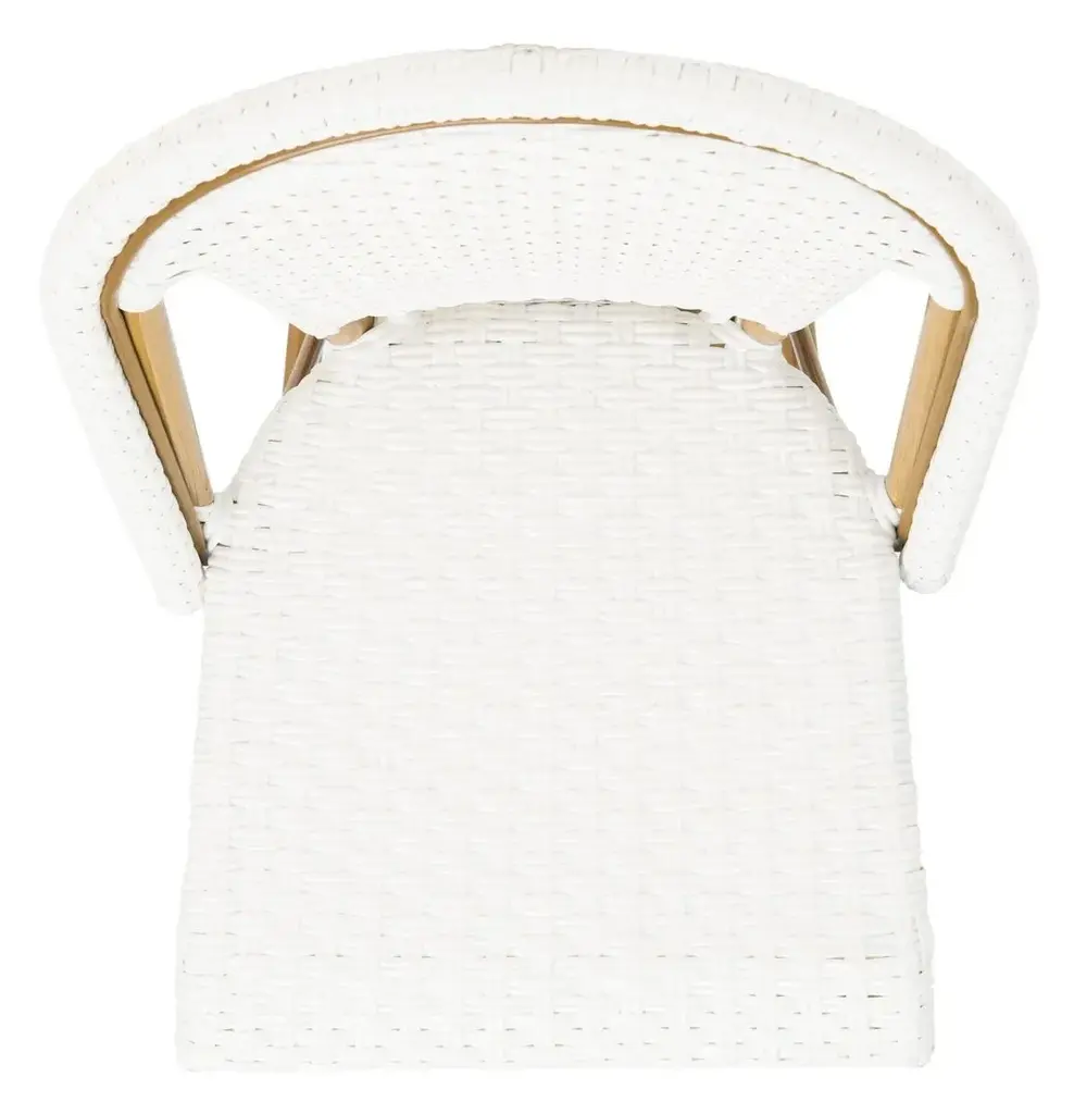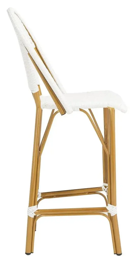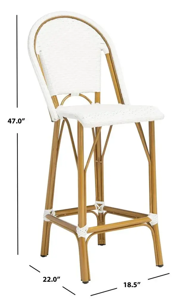 A café in hidden in the heart of Saint Germain des Prés inspired this Ford Indoor/Outdoor French Bistro Barstool. Alive with Gallic charm, its white wicker design lends instant character to a breakfast bar or outdoor kitchen. Care Instructions: Store outdoor furniture indoors or cover well when not in use. Remove wooden furniture from standing water. Dust regularly with small brush or vacuum. Spills should be taken care of immediately before they harden or stain with a slightly dampened sponge. Do not use bleach solutions.