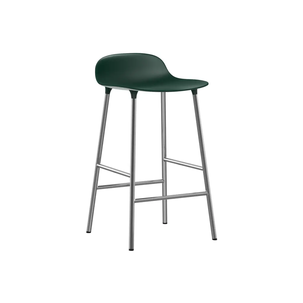 Steel legs distinguish this barstool version of the Form seating collection from Normann Copenhagen. Danish designer Simon Legald couples bright chrome legs with the low-back polypropylene seat that is at the core of the series. It all began with a comfortable seamless shell chair that underwent more than 20 prototypes spanning 3 years to develop. Another example of how the Form's versatility more than validates its design bonafides as well as its essential comfort.