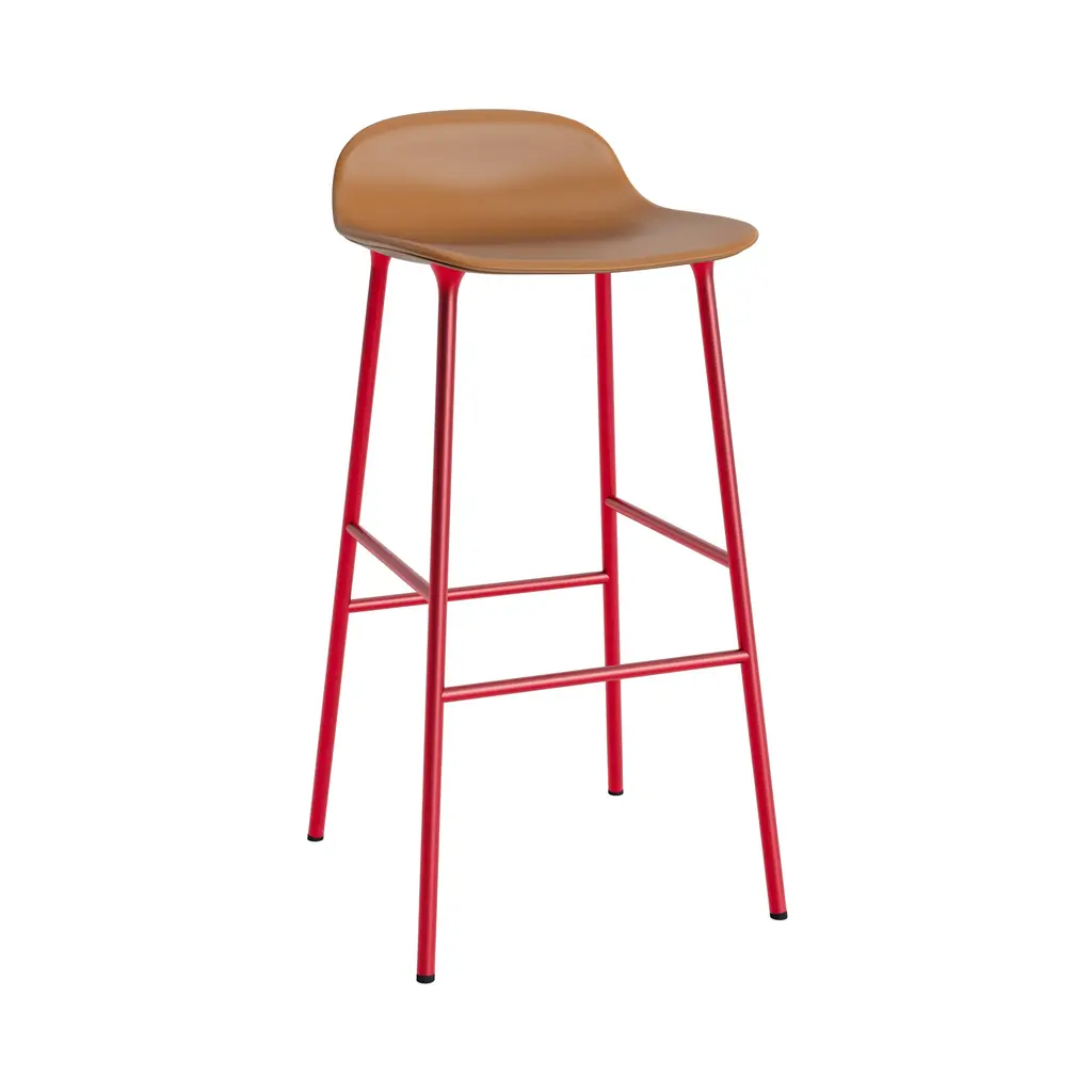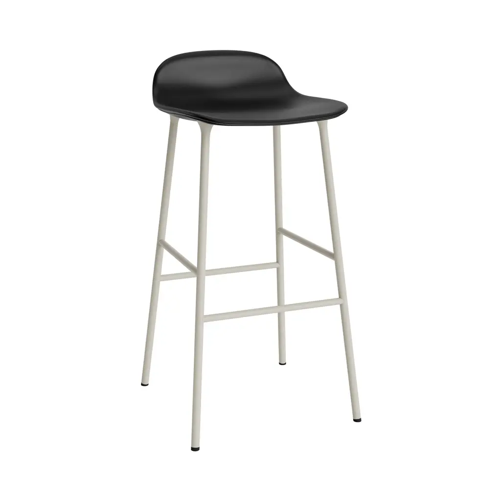This upholstered stool in the Form series from Danish designer Simon Legald takes a linear point of view. A curved shell seat is mounted on angular powder-coated steel legs, in either bar or counter height. Produced by Normann Copenhagen, the seamless organic form in molded polypropylene gives shape to numerous upholstery options, including superb textiles from Danish brands Gabriel and Kvadrat as well as a refined leather option. It's a decidedly minimalist option that melds with a variety of interiors.