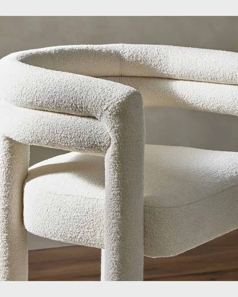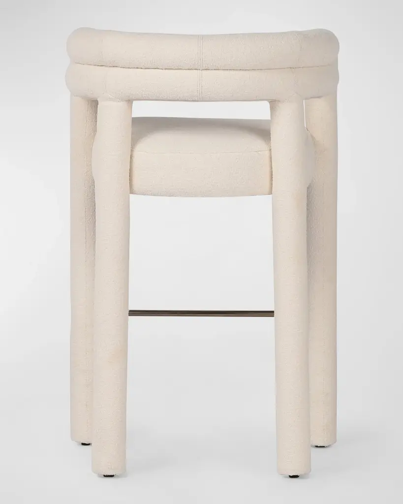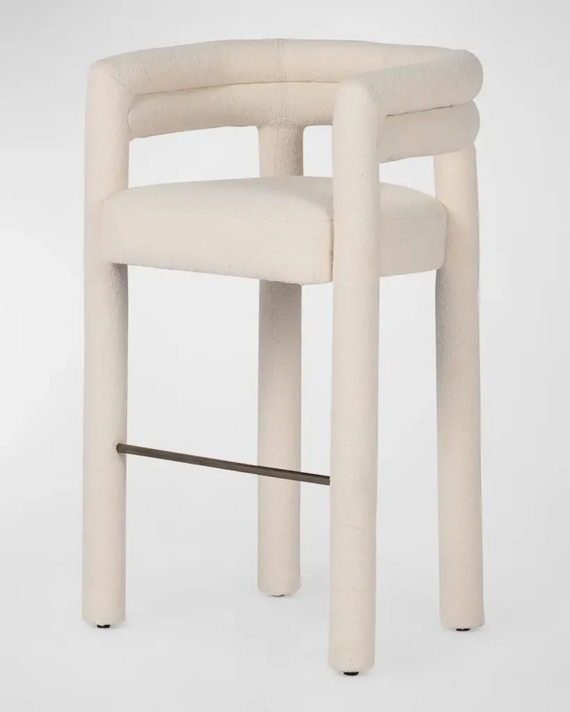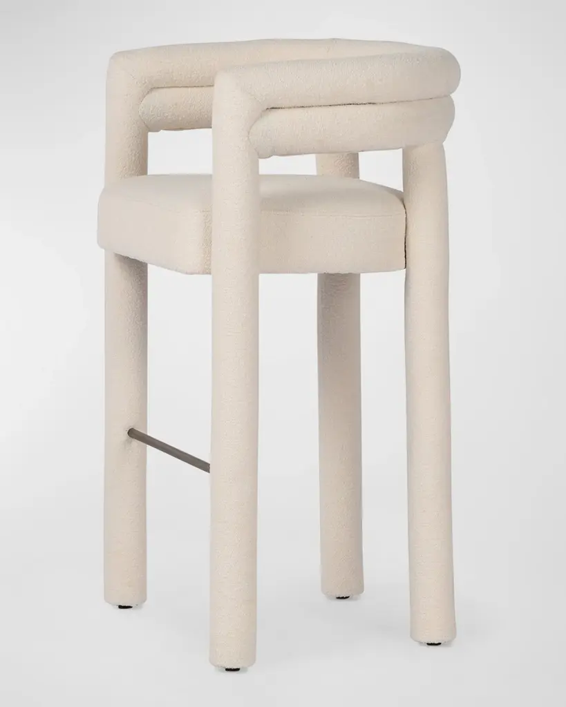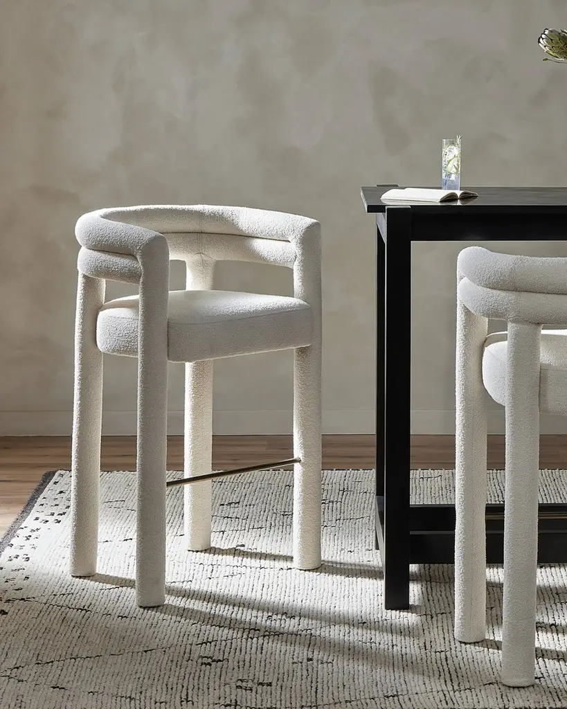 Tubular shaping lends a fluid look to this fully upholstered dining style in a performance fabric. Perfectly sized for the bar, a metal stretcher makes for a comfortable seat. Handcrafted of poplar wood, cotton, polyester, and iron Overall, approx. 25"W x 22.75"D x 40"T Seat, 19"W x 19"D x 31"T Arm height, 40" Finished back Spot clean Weight, 35.0 lbs Imported Boxed weight, approximately 49.6 lbs Shipping Direct from Vendor, usually ships within 10 business days. About Four Hands: Four Hands is a dynamic lifestyle brand that offers a diverse range of furniture and home decor items. With a focus on innovative design and quality craftsmanship, Four Hands creates pieces that blend modern aesthetics with traditional craftsmanship. From stylish sofas and chairs to unique accent pieces and accessories, each product is thoughtfully designed to inspire and elevate any living space. With a commitment to sustainability and ethical practices, Four Hands is dedicated to creating beautiful, functional, and responsibly made products for the modern home.